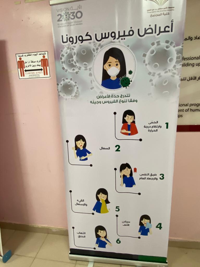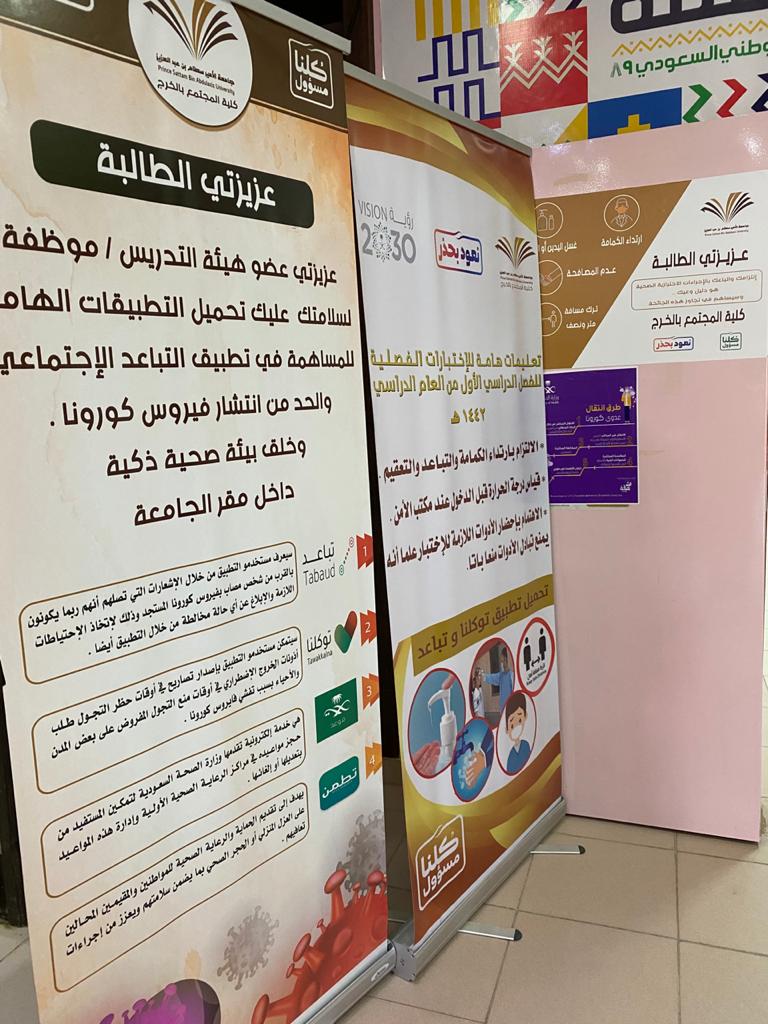 تفقّدت وكيلة الجامعة لشؤون الطالبات الدكتورة بشرى بنت أحمد الحماد يوم الثلاثاء 26/2/1442هـ ، سير الاختبارات الفصلية بأقسام الطالبات في ظل الإجراءات الاحترازية للوقاية من فيروس ( كورونا – (COVID-19 ، وقد شملت زيارتها أقسام الطالبات لكلية المجتمع بالخرج وكلية إدارة الأعمال ، واطلعت خلال جولتها على الإجراءات الوقائية المتخذة في دخول الطالبات ، وتنظيم قاعات الاختبارات ، والمحافظة على التباعد بين الطالبات في جميع مرافق الكلية .