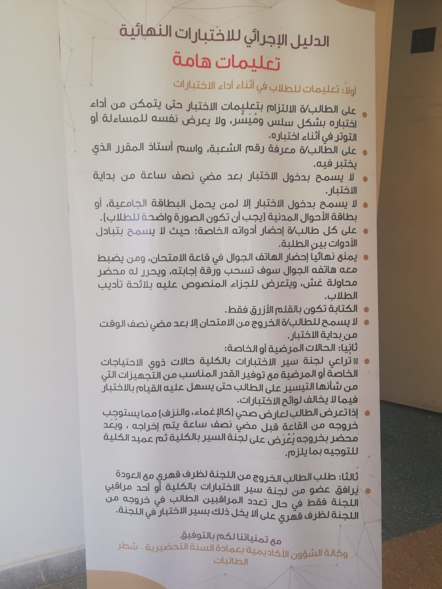 قامت وكيلة عمادة السنة التحضيرية لشؤون الطالبات سعادة د أمل بنت صالح الشمراني بجولة تفقدية للجان الاختبارات النهائية للفصل الثاني من العام الجامعي 1439- 1440هـ ، حيث اطلعت على سير الاختبارات وتنظيمها وأكدت على الجميع بضرورة الالتزام باللوائح المنظمة لشؤون الاختبارات ، وثمنت جهود رئيسة وحدة الاختبارات ووكيلات الأقسام في العمل بروح الفريق الواحد بهدف توفير الأجواء المناسبة التي تضمن أداء الطالبات لاختباراتهن بكل دقة ويسر.