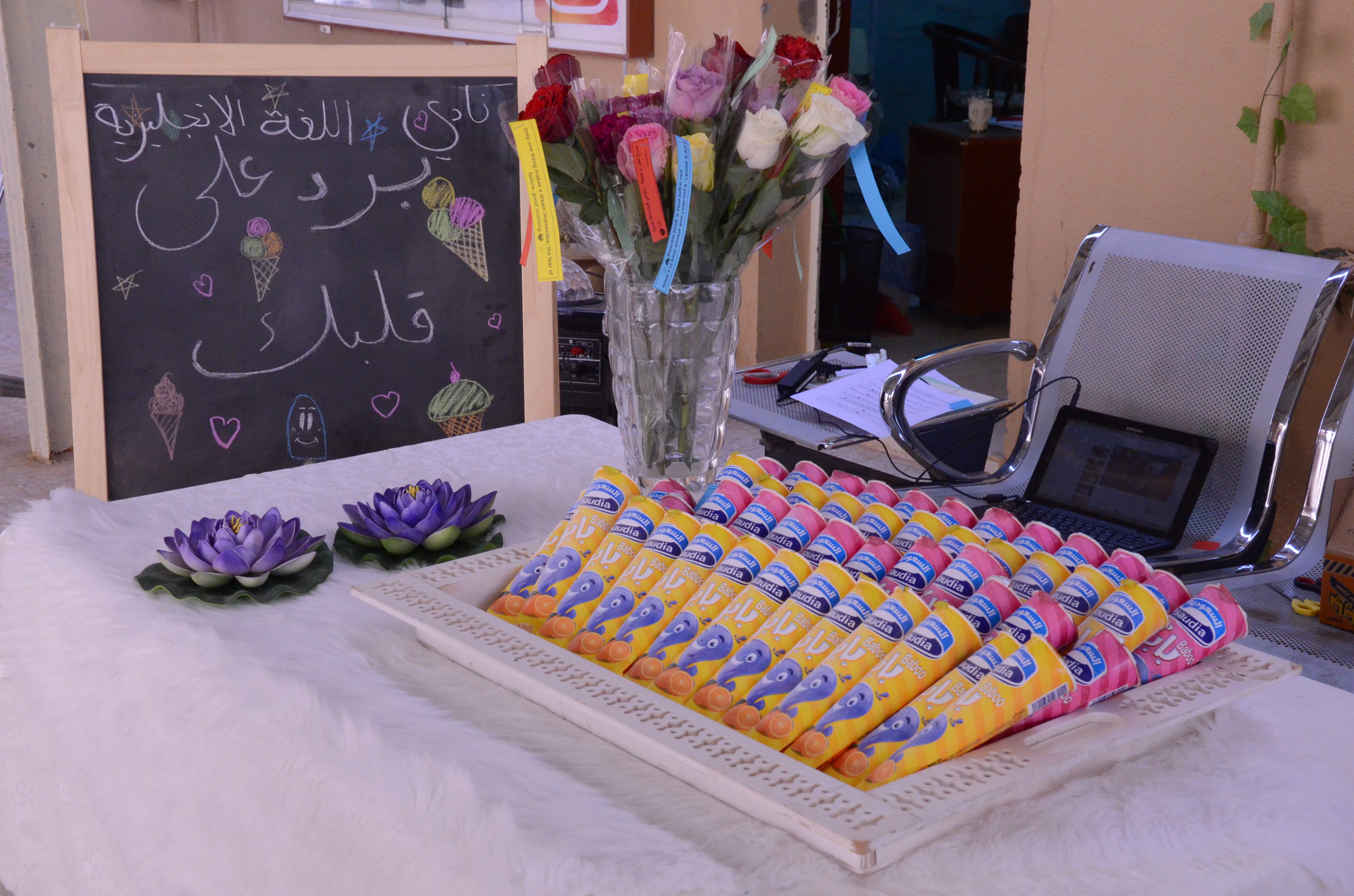 وتم خلال الوردية توزيع المثلجات والورود على الطالبات.