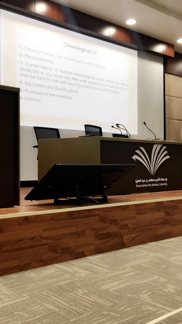 نظم قسم اللغة الإنجليزية بكلية العلوم والدراسات الإنسانية بالخرج ( طالبات) يوم الأثنين الموافق 30/7/1439هـ وتحت إشراف وكيلة القسم برنامج وورش عمل لخريجات القسم والطالبات المتوقع تخرجهن في مسرح الكلية.