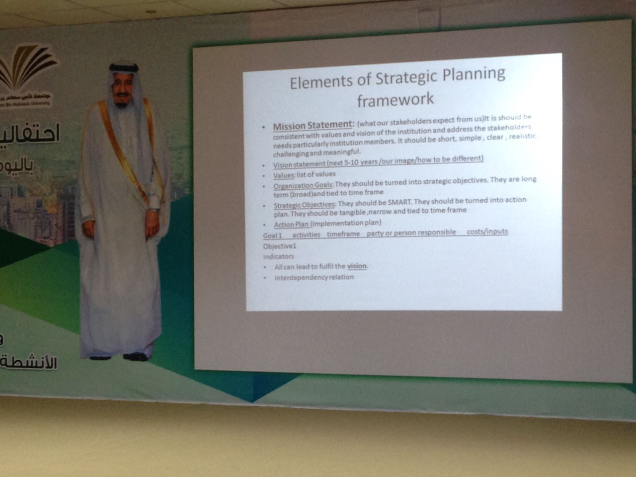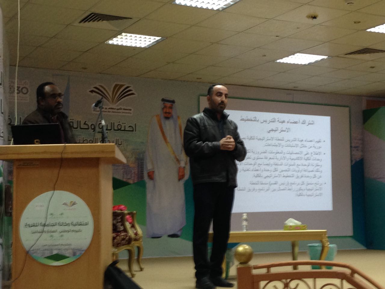 أقامت وحدة الخطة الإستراتيجية بوكالة التطوير والجودة بكلية الآداب والعلوم وادي الدواسر ورشة عمل بعنوان ( دور عضو هيئة التدريس في التخطيط الاستراتيجي) في مسرح الكلية وقدمها الدكتور عصام خطاب و والأستاذ سليمان الزعبى .