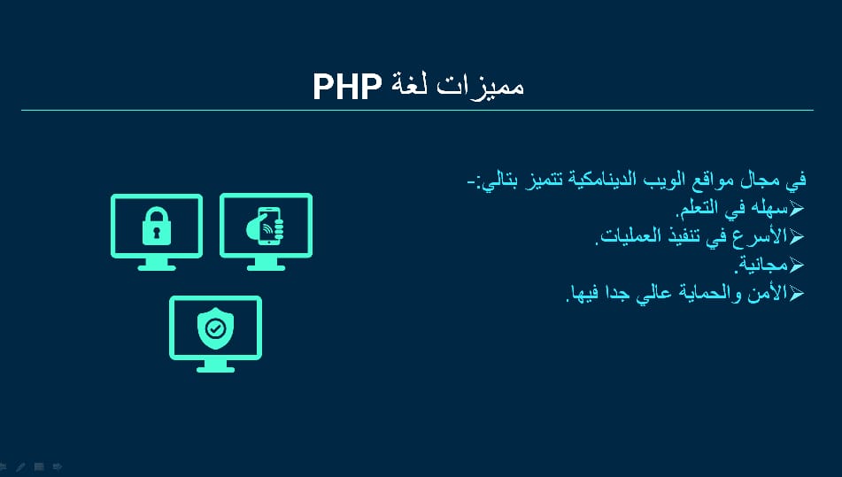 كما تحدثت الأستاذة عن مميزات لغة PHP في مجال مواقع الويب الدينامكية من سهولة في التعلم والأسرع في تنفيذ العمليات وكونها مجانية والامن والحماية العالية فيها. وغيرها من النقاط الهامة التي تمت مناقشتها مع الحضور والإجابة على اسئلتهن حولها.