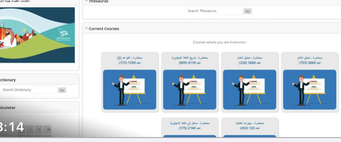 هدفها: تدريب أعضاء هيئة التدريس الجدد على ميزات "واجهة المعلم" الخاصة بالبلاك بورد. والتي تناولت الشرح والتوضيح والتفصيل لتمكين أعضاء هيئة التدريس الجدد من متابعة واجهة المعلم لمقرراتهم وكيفية ذلك في صفحات المقررات الدراسية الخاصة بهم في نظام البلاك بورد .