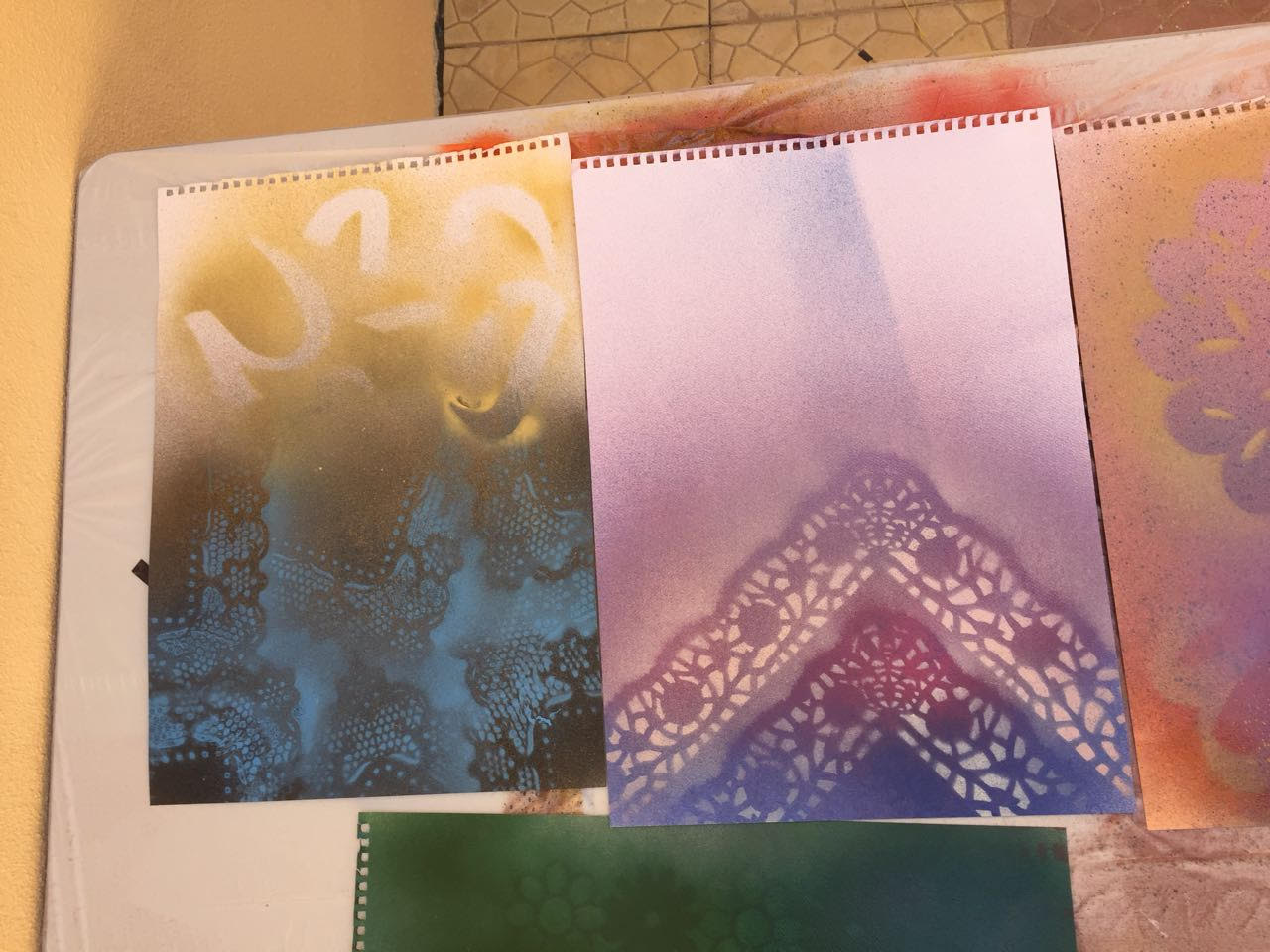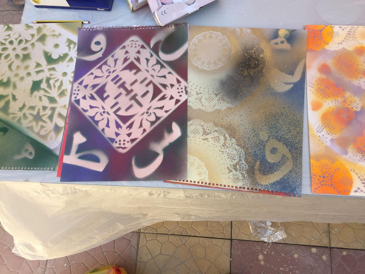 أقام نادي الابداع في كلية العلوم والدراسات الانسانية بحوطة بني تميم ورشة عمل بعنوان" ابتكار مدركات تشكيلية جديدة من الزخارف الاسلامية باستخدام طباعة الاستنسل " وذلك يوم الأحد الموافق 9/ 2/ 1439 هـ بإشراف أ/ مها الصقعبي وحضور عميدة الكلية الدكتورة حصة الهزاني. هدفت هذه الورشة إلى الاستفادة من مجال الطباعة بالاستنسل كأحد المنطلقات الابداعية في مجال الطباعة اليدوية لتنمية التراث الثقافي الإسلامي من خلال المحافظة على الماضي والتطلع للمستقبل. وفي نهاية الورشة تمكن عدد من الطالبات من انتاج لوحات فنية تجمع بين أنواع الزخرفة الإسلامية بأسلوب فني معاصر. وقد شهدت هذه الفعالية حضور من عميدة الكلية والوكيلة وعدد من الطالبات وأعضاء هيئة التدريس بالكلية.