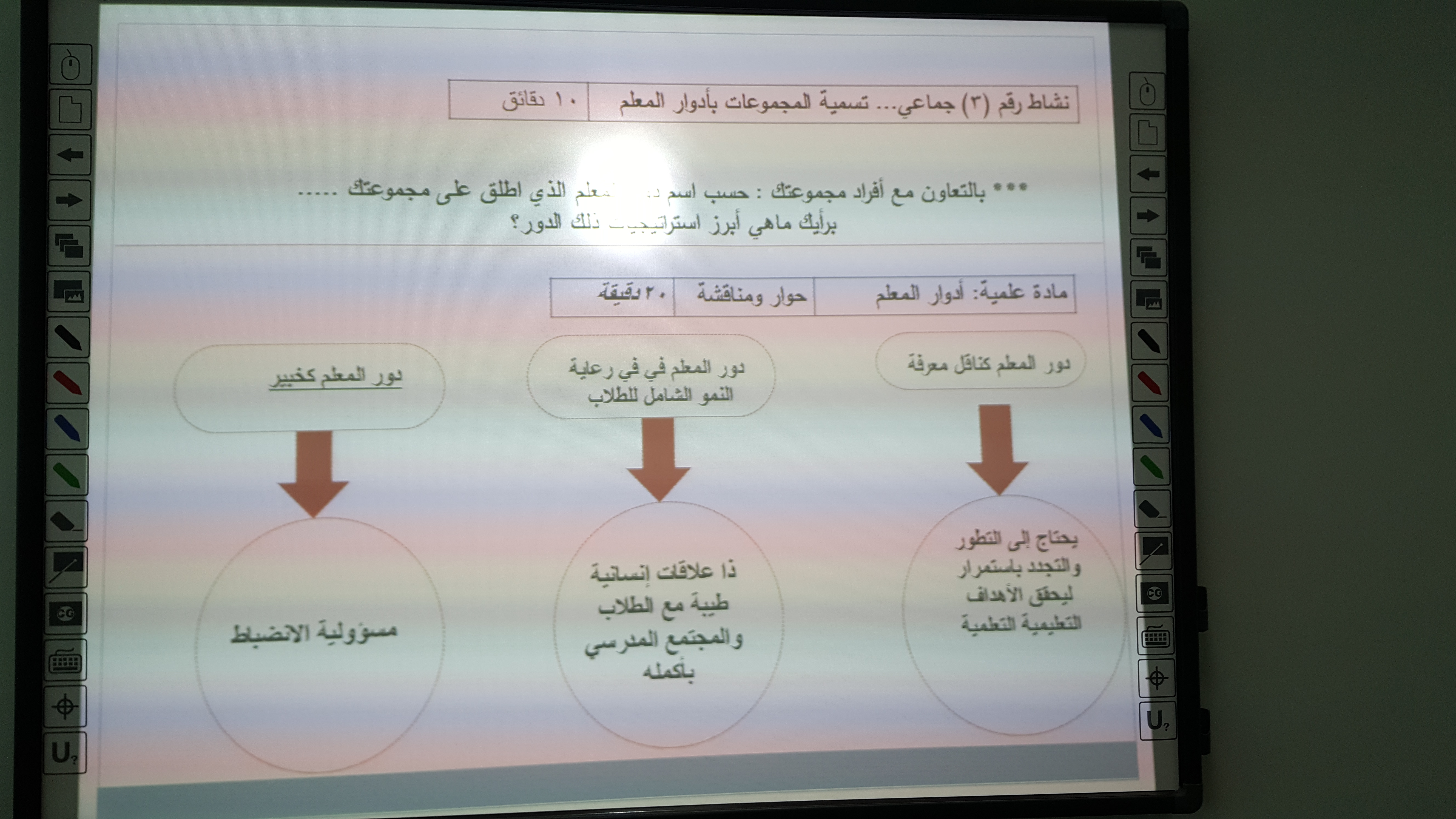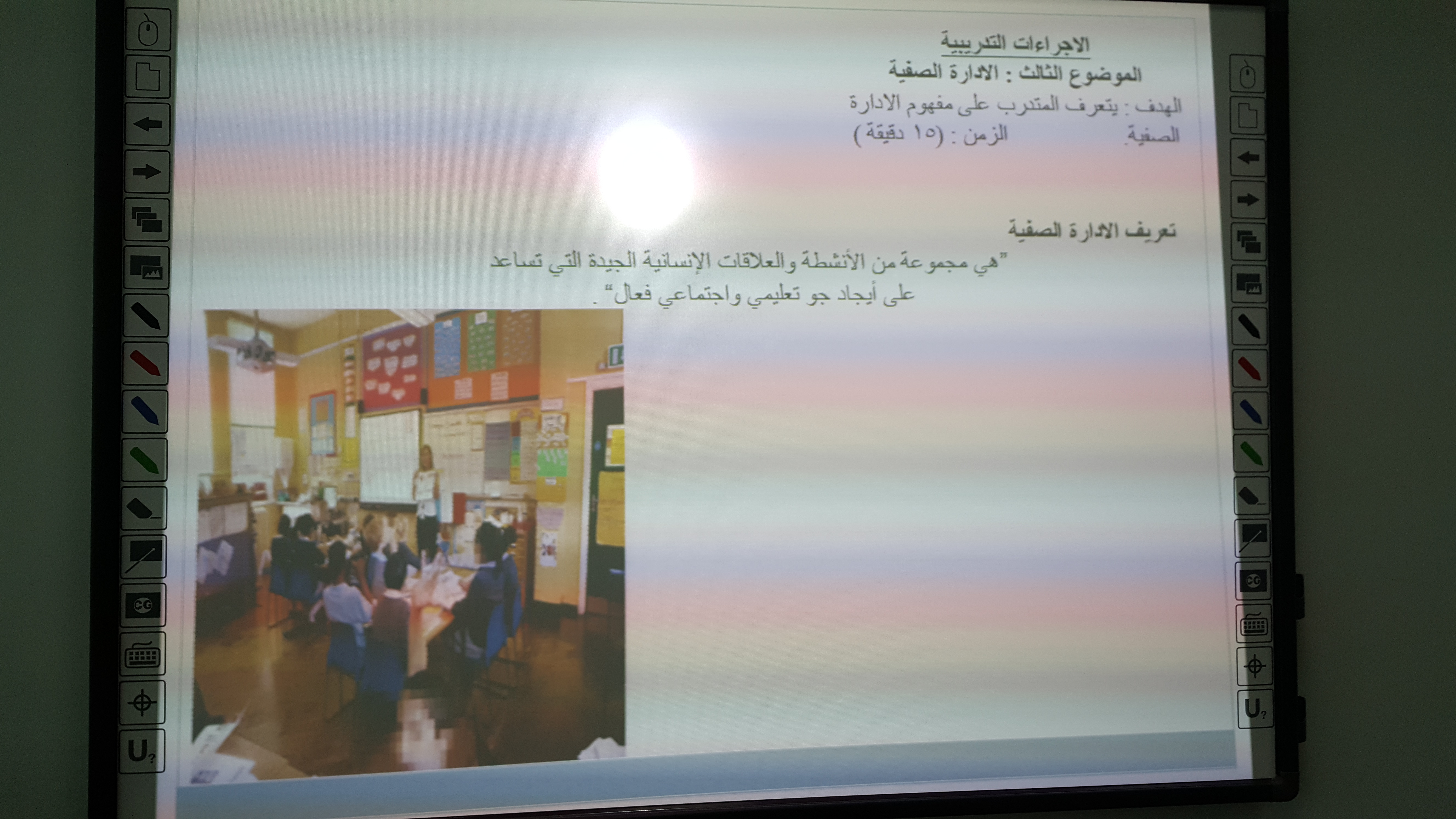 و كان الهدف منها : التعرف على أهم ملامح النظام التعليمي الجديد واستنتاج دور المعلم في العملية التعليمية في ضوء متغيرات العصر الحديث ،التعرف على معنى الإدارة الصفية وكيفية إدارة الصف بعدة معايير.