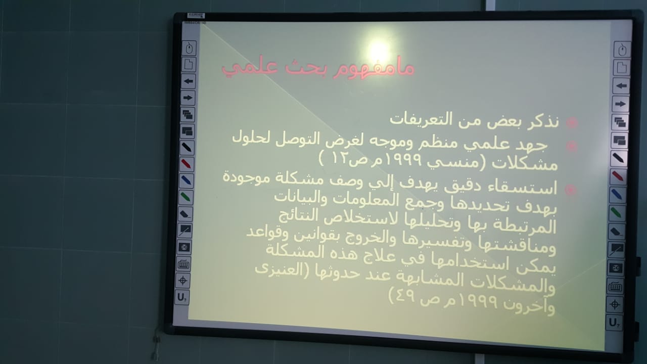 نفذ نادي البحث العلمي بالتعاون مع وحدة البحث العلمي بكلية التربية بالدلم ورشة تدريبية بعنوان "أهداف ومشكلة البحث العلمي" والتي تهدف إلى معرفة كيفية تحديد المشكلة البحثية وصياغة الاهداف والفروض ونواتج الدراسة يوم الثلاثاء الماضي الموافق:13/3/1440هـ القتها الدكتورة/منى طه -الأستاذ المساعد بقسم العلوم التربوية-وبحضور عدد من الطالبات، حيث تناولت الورشة عدة محاور من ضمنها مفهوم البحث العلمي ومصادر اختيار المشكلة البحثية واهدافه ثم تطرقت لصياغة فروض البحث وذكر أنواعه و أمثلة عليه للوصول إلى نتائج البحث المعتمدة على عدة أمور منها جمع البيانات وتحليلها حيث ربطت المدربة مضامين الورشة بواقع الطالبة، ودعمت الورشة بعدة أنشطة تفاعلية للطالبات.