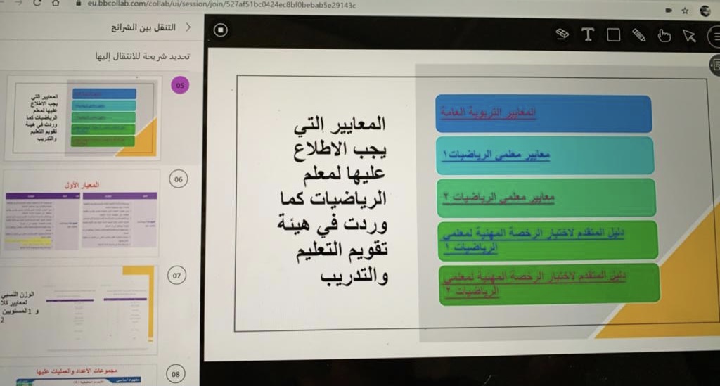 افتتحت وحدة التدريب المهني التابع لوحدة الخريجات بكلية التربية بالدلم تحت إشراف الدكتورة/منال عبدالله زاهد، بالتعاون مع قسم الرياضيات برنامجها التدريبي الموجة لخريجات قسم الرياضيات والمتوقع تخرجهن بورشة عمل بعنوان" اختبار كفايات معلمات الرياضيات -المعيار الأول" وذلك صباح يومي الثلاثاء والأربعاء الموافق:24-25/8/1442هـ عبر البلاك بورد.