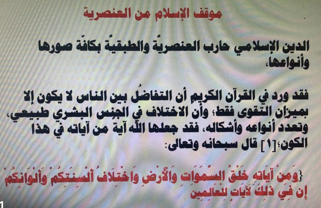 قدمت وحدة التطوير والجودة ممثلة في وحدة التطوير والتمييز العلمي بكلية الآداب والعلوم بالتعاون مع قسم الدراسات الإسلامية ممثل في الدكتورة: زينب أحمد السعيد الأستاذ المساعد بالقسم ورشة عمل بعنوان " (التمييز العنصري وأثره في تدمير العلاقات الإنسانية)