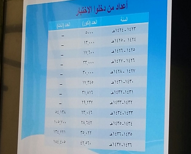 ثم قدم عرض شامل عن اختبار كفايات المعلمات ،وأوضح د.خالد أن الهدف من هذه الاختبارات المساهمة في تجويد مخرجات برامج إعداد المعلمين والمعلمات.