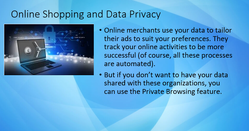 • التسوق عبرالإنترنت وخصوصية البيانات.