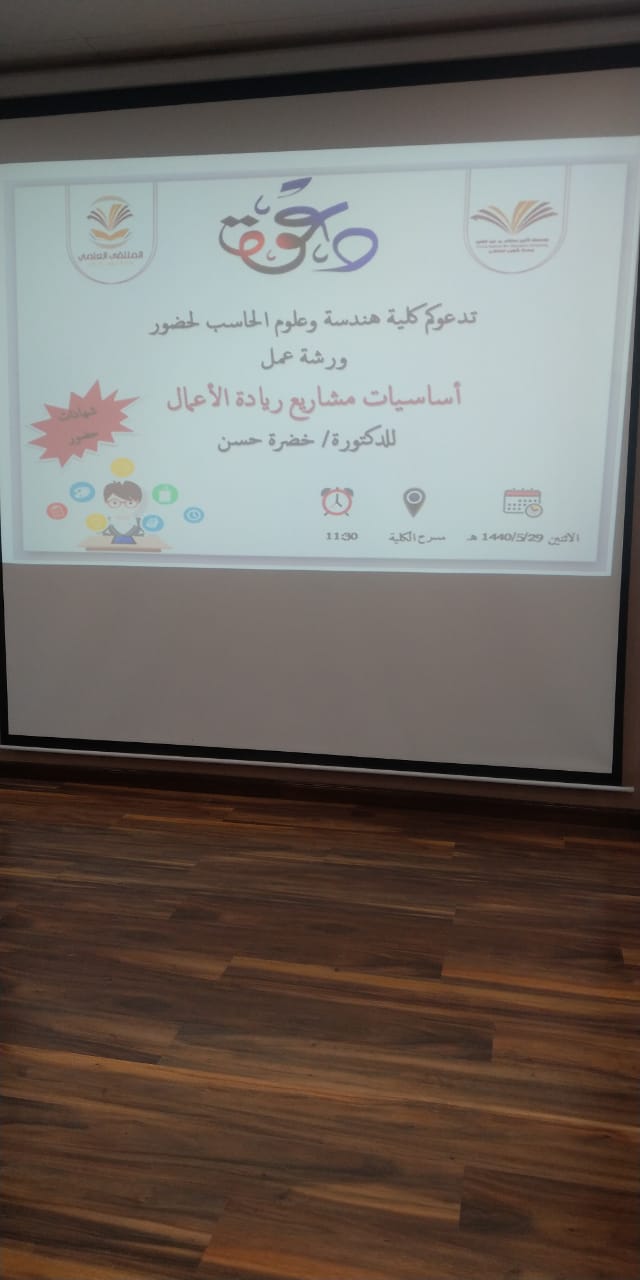 تم أقامة ورشة أساسيات مشاريع ريادة الأعمال بكلية هندسة وعلوم الحاسب ضمن البرنامج التدريبي للملتقى العلمي الثالث.