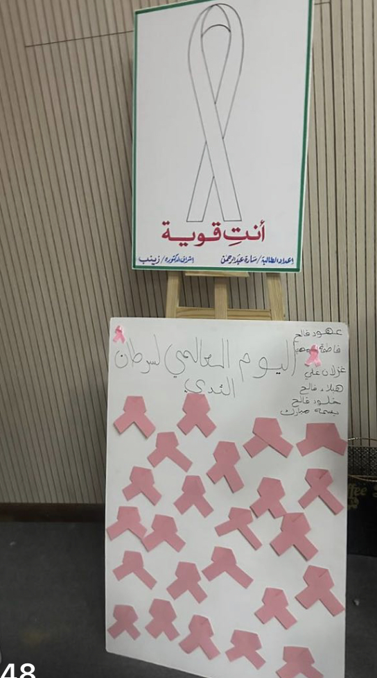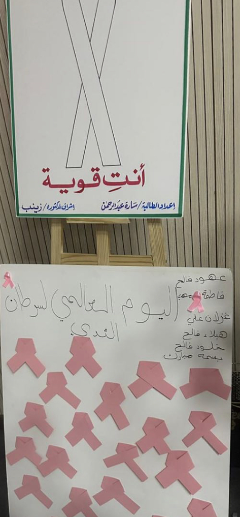 نظمت وحدة المسؤولية المجتمعية متمثلة في خدمة المجتمع بكلية الآداب والعلوم بوادي الدواسر بالتعاون مع قسم الكيمياء ورشة بعنوان "الفحص المبكر لسرطان الثدي" و ذلك يوم الثلاثاء الموافق 1445/3/25هـ من تقديم الدكتورة زينب آدم محمد