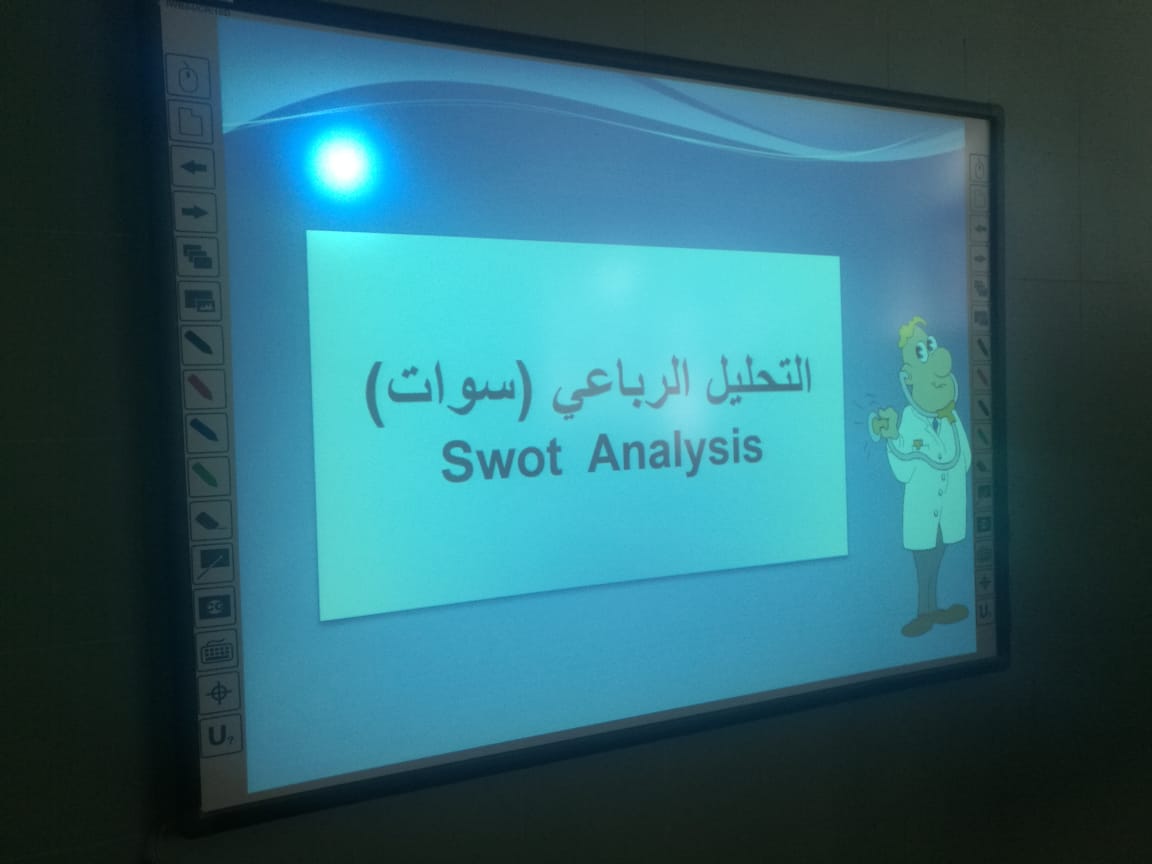 نظمت وحدة التخطيط والتطوير بوكالة كلية التربية بالدلم للتطوير والجودة ورشة عمل ، بعنوان: (التحليل الرباعيSOWT)يومي الاثنين والثلاثاء الموافق 15-16 / 5 /1440 هـ بقاعة الورش التدريبية