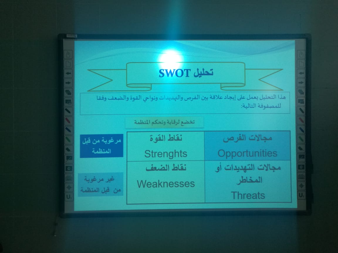 في إطار الجدول الزمني لتحديث الخطة الاستراتيجية لكلية التربية بالدلم في ضوء الخطة الاستراتيجية للجامعة- إصدار2 ، تناولت الورشة مراجعة تحديد الوضع الراهن للكلية استناداً على التحليل الرباعي SOWT للبيئة الداخلية والخارجية، من خلال تحديد نقاط القوة، الضعف، الفرص، والتهديدات كقضايا محورية يتم التركيز عليها كنقطة انطلاق لتحديث الأهداف الاستراتيجية للكلية وفقاً للخطة الاستراتيجية للجامعة.
