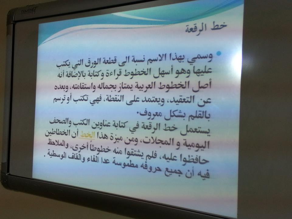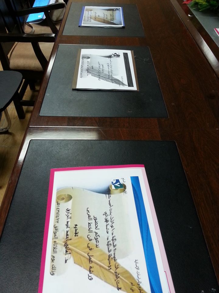 نظم قسم اللغة العربية بكلية العلوم والدراسات الإنسانية بحوطة بني تميم في إطار فعاليات المؤتمر العلمي السابع للطلاب والطالبات ورشة عمل عن فن الخط العربي تحت إشراف وكيلة الكلية ورئيسة لجنة الخطابة والخط العربي د. حصة الهزاني وأعدت الورشة وقدمتها د. أماني أحمد محمد عبد الرازق بمشاركة أ. لولوه المسعد وقد حضرت الورشة عميدة الكلية أ.د عواطف بنت أحمد هندي ووكيلة الكلية د. حصة الهزاني .وقد تضمنت الورشة أهمية الخط العربي وأنه فن وتصميم الكتابة في مختلف اللغات التي تستعمل الحروف العربية و تتميز الكتابة العربية بكونها متصلة مما يجعلها قابلة لاكتساب أشكال هندسية مختلفة.ثم تحدثت أنواع الخطوط العربية وعن أنماطها والأدوات المستخدمة في الكتابة وذلك من خلال عرض لبعض الفيديوهات ثم تلا ذلك تعريف للخطوط العربية كالخط النسخ والرقعة والثلث والكوفي والديواني .... مع صور توضيحية لكل خط وطريقة كتابة كل خط من تلك الخطوط . وأخيرًا عرضت لبعض الصور بالخطوط المختلفة والتي تمثل لوحا فنية من خلال كتابة بعض الكلمات بالأحرف المختلفة وفي نهاية الورشة أوضحت للطالبات أن هناك دورات تدريبية على أنواع الخطوط المختلفة تقدمها بالاشتراك مع د. حصة الهزاني و أ. لولوه المسعد.