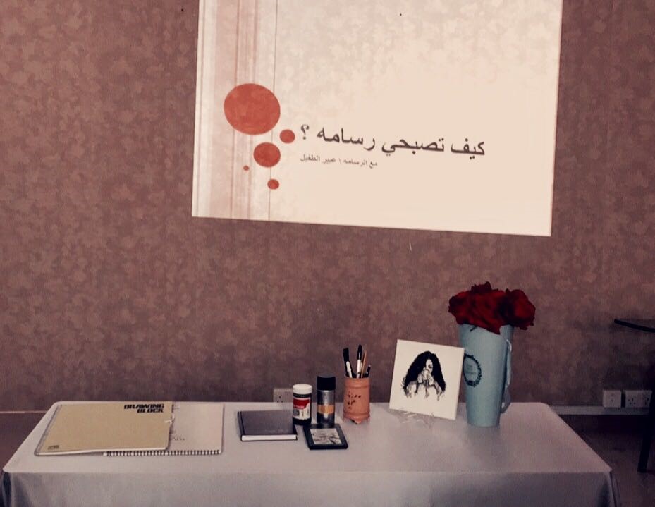 أقام نادي الإبداع وتحت إشراف المجلس الطلابي بالكلية يوم الأربعاء الموافق 11/3/1439هـ ورشة عمل بعنوان (فن الرسم) من إعداد وتقديم الأستاذة /عبير الطفيل، وقد تحدثت الأستاذة عبير عن طبيعة الرسم وأشكاله والأدوات التي نحتاجها في الرسم وقامت برسم لوحة أمام الطالبات لتوضيح كيفية الرسم على أرض الواقع كما وصاحب الورشة معرض لعدد من الرسومات الجميلة وقد نالت الورشة والمعرض على استحسان الطالبات.