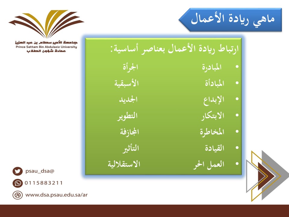 - أهمية ريادة الأعمال في تنمية الاقتصاد الوطني.
