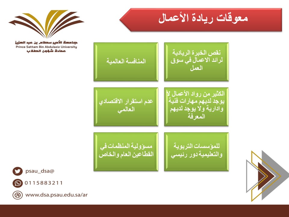 - معوقات ريادة الأعمال.