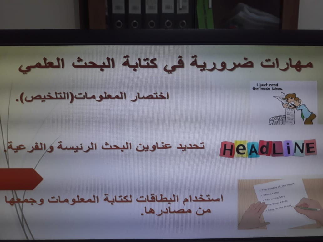 أقامت وحدة الخريجات بكلية العلوم الطبية التطبيقية بوادي الدواسر متمثلة فى لجنة مشاريع التخرج يوم الأحد الموافق ٢١/ ٢ / ١٤٤١ ورشة عمل تحت عنوان: كيفية اختيار وإعداد وكتابة بحث علمي وتضمنت الورشة الاستماع لآراء ومقترحات طالبات مشروع التخرج المنتظر تخرجهم وتم القاء محاضرة تضمنت معنى مصطلح بحث علمى، الخطوات،الفرضيات، النتائج والتحليل وتصميم الصفحات خاصة البداية والنهاية وكل المهارات، الضرورية لكتابة البحث. وتطبيق عملي يعرض نماذج لابحاث منشورة لتوضيح النقاط محل الدراسة وحظيت المحاضرة بحضور طالبات قسم المختبرات قيد التخرج والمتوقع تخرجهم.