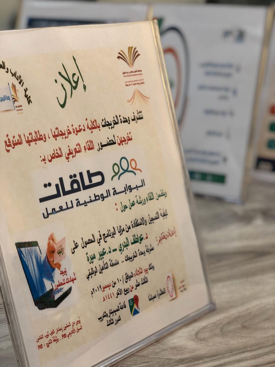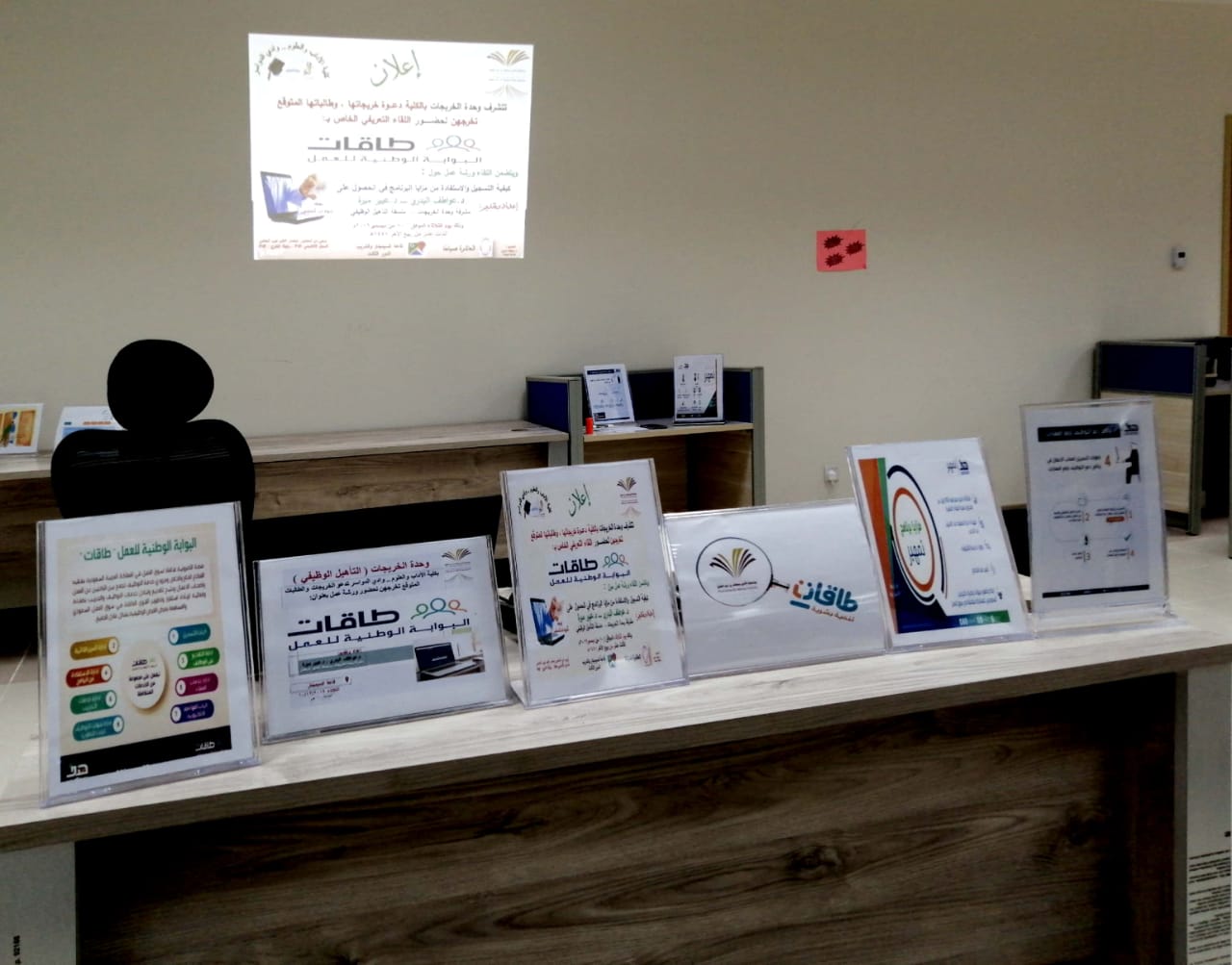 وانتظمت أعمال الورشة التعريف بالبوابة الوطنية ( طاقات) .. حافز الجديد المتعلقة بتوفير فرصة وظيفية مناسبة وفق التخصص .