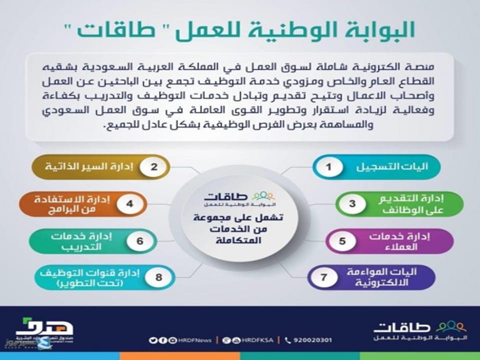 1-تعريف الخريجات ، والطالبات المتوقع تخرجهن على كيفية إلى البوابة الوطنية طاقات وشروط التسجيل فيها .