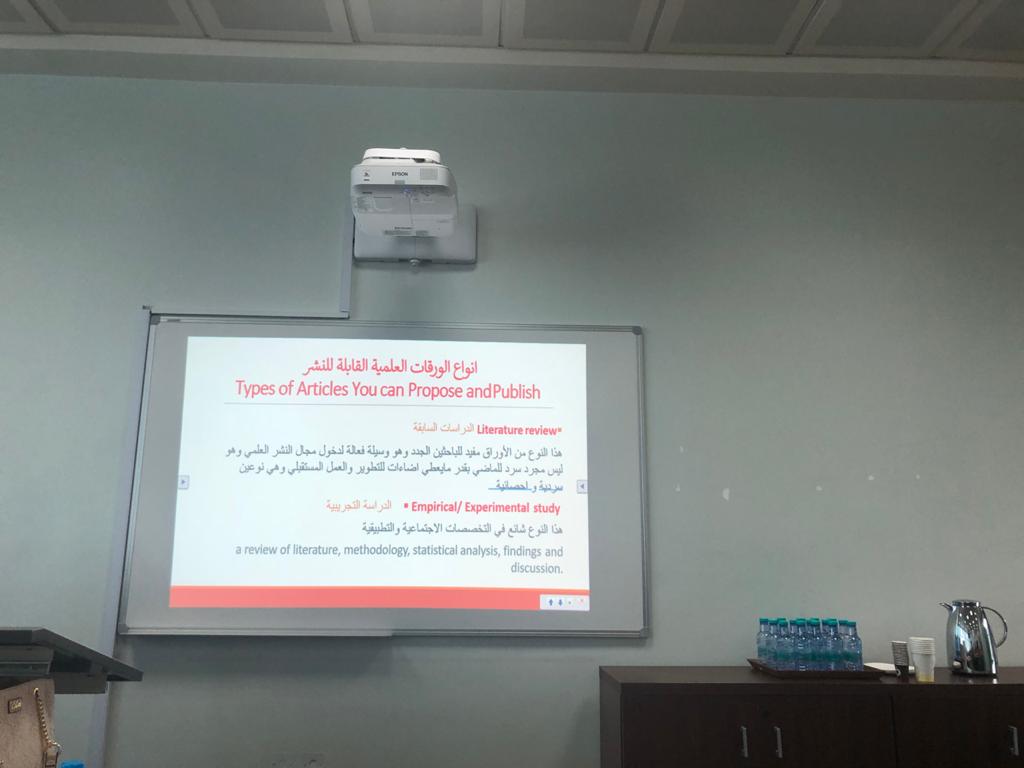 كما تناولت اهم النصائح العامة للنشر لتجنب رفض النشر للورقة العلمية وكيفية تسليم الورقة العلمية بشكل سليم للمجلة المعنية وكيفية التعامل مع قرارات المحكمين ودار نقاش بين سعادة الدكتورة والحضور في كل ما يخص النشر الدولي.