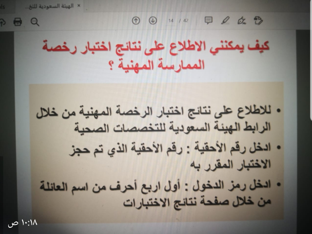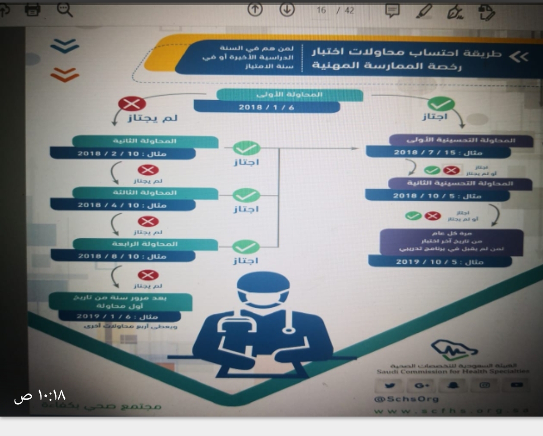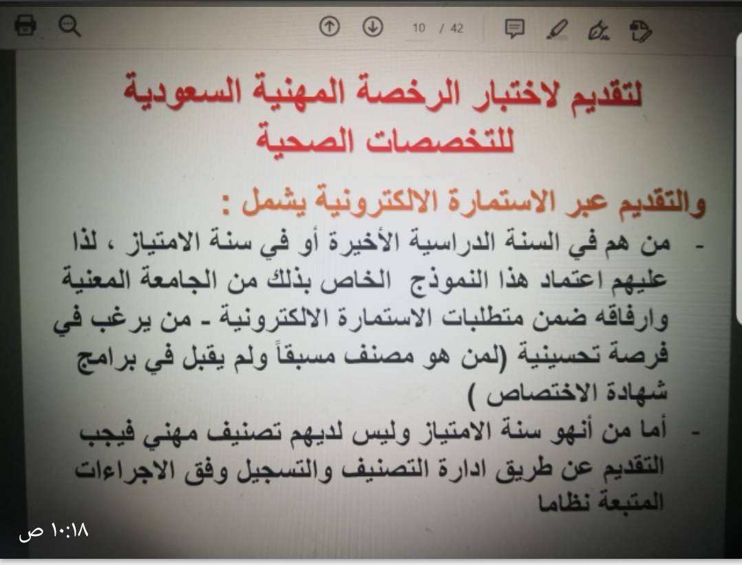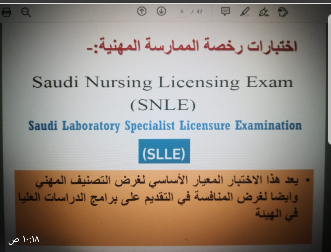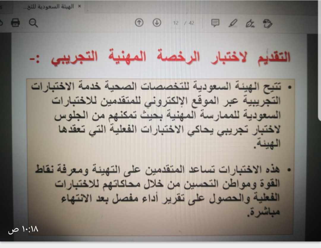 و تم شرح اختبارات الحصول على رخصة مزاولة المهنة وغرض الهيئة من تلك الاختبارات لخلق مجتمع صحي بكفاءة عالية و مؤهلة تبعا لأحدث و أفضل المعايير الصحية و الطبية.