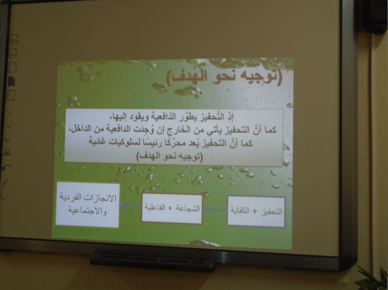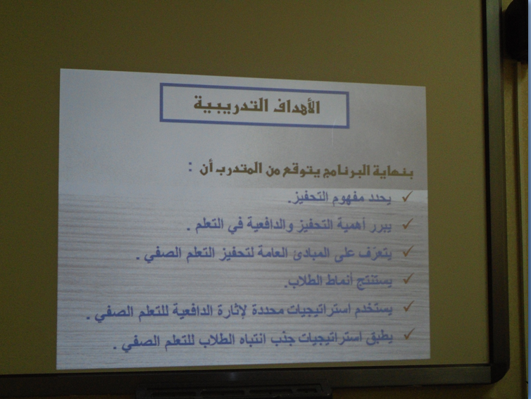 ضمن برنامج تنمية مهارات عضوات هيئة التدريس الذي تنفذه وكالة الجامعة للشؤون التعليمية والأكاديمية ممثلة بالوحدة الإشرافية على كليات البنات بهدف تطوير المهارات التدريبية لدى عضوات هيئة التدريس ،أقيمت ورشة "مهارات تحفيز الطالبات وزيادة الدافعية الذاتية" في يوم الأحد الموافق 25 /11/1437هـ من إعداد وتقديم أ.أنوار حماد الرشيدي عضو هيئة تدريس بقسم علم النفس بكلية التربية بالخرج، بقاعة الخنساء وقد استمرت الورشة لمدة خمس ساعات من الساعة الثامنة والنصف صباحاً حتى الساعة الواحدة والنصف ظهراً، حيث تلعب دافعية الإنجاز والتحفيز دوراً في رفع مستوى أداء الفرد وإنتاجيته في مختلف المجالات والأنشطة التي يواجهها ، ولعل من أبرزها مجال التربية والتعليم ، ولما للتحفيز من أهمية قصوى في الرفع من جودة التعليم ، وتهدف الورشة بشكل عام أن يكون المتدرب قادراً على تحفيز الطلاب وفق الأسس التربوية ،والمساهمة في بناء جيل مبدع قيادي ، متمسك بقيمة ، معتز بدينه ، متميزاً في تحفيز نفسه والآخرين لمواكبة التطور والازدهار ، و تهدف الورشة بشكل خاص إلى تحدد مفهوم التحفيز – بيان أهمية التحفيز والدافعية في التعلم – تعريف المتدرب على المبادئ العامة لتحفيز التعلم الصفي – معرفة واستنتاج أنماط الطلاب – استخدام استراتيجيات محددة لإثارة الدافعية للتعلم الصفي – تطبق استراتيجيات جذب انتباه الطلاب للتعلم الصفي .