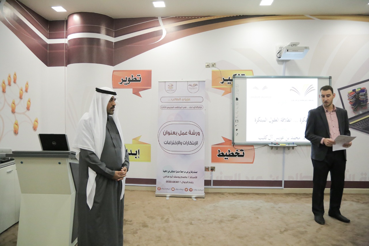 وتناولت الورشة التي قدمها الدكتور: محمد بن عويس الدوسري إلى عدة محاور أولها محور الإبتكارات والإختراع ومفهومه وخصائصه وأهميته وعلاقة الإبداع بالابتكار والاختراع وأيضاً مراحل الابتكار الأساسية و خطوات بناء الفكرة الإبتكارية وتضمين القبعات الست للتفكير في الإبتكار كما تطرقت الورشة إلى شروط و ضوابط المشاركة في محور الابتكارات بالملتقى العلمي الثالث