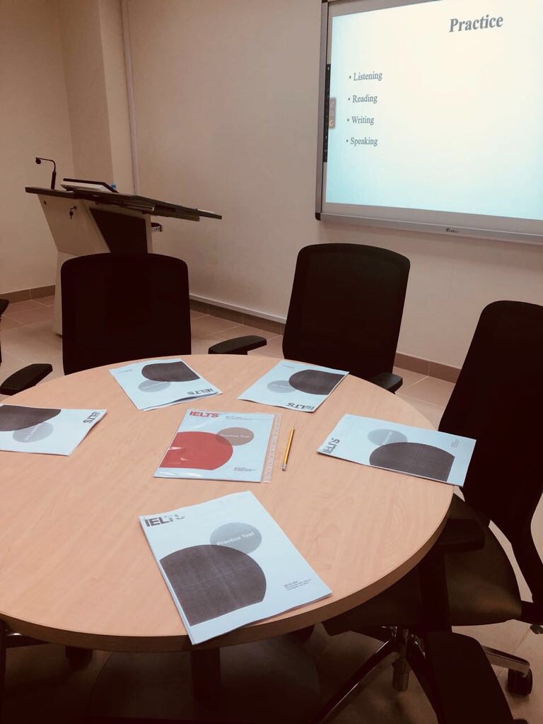 حيث خصصت الورشة لطالبات المستوى الثامن في قسم اللغة الإنجليزية ,وقد هدفت الورشة إلى إطلاع الطالبات الراغبات لأداء اختبار الأيلتس مستقبلًا عن ماهية الاختبار وإعطاء نصائح عامة عنه وكذلك عمل تدريب فعلي على الاختبار.