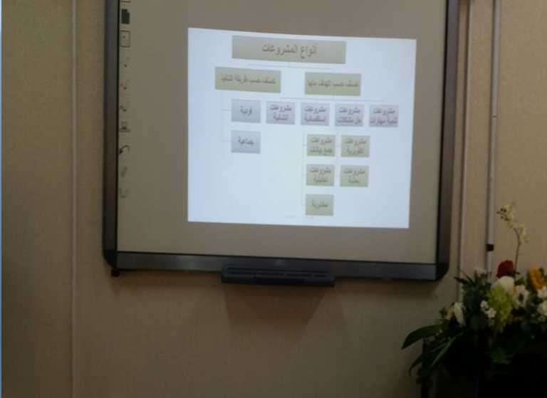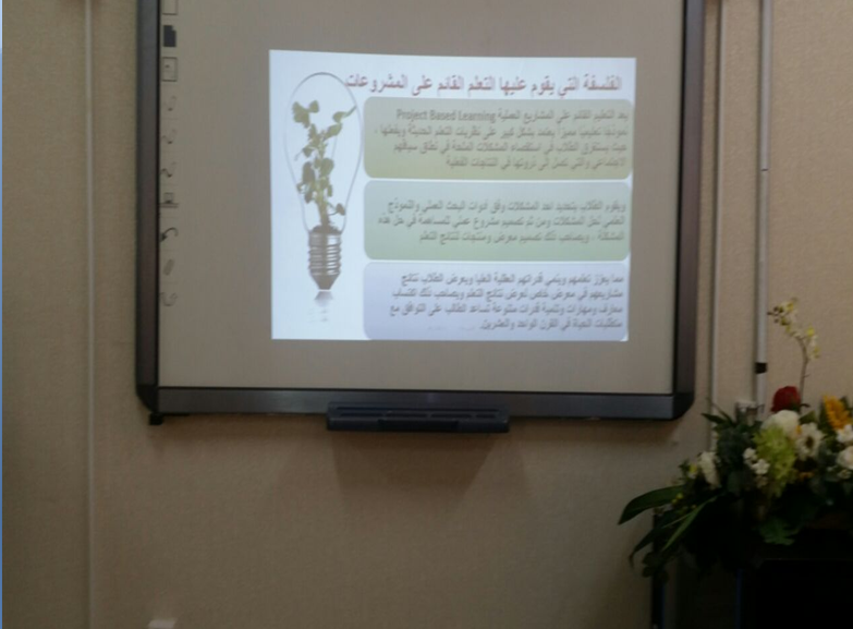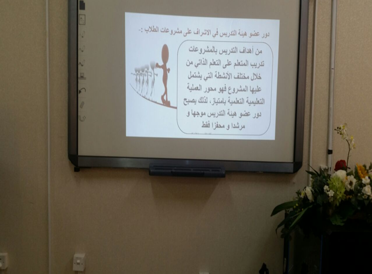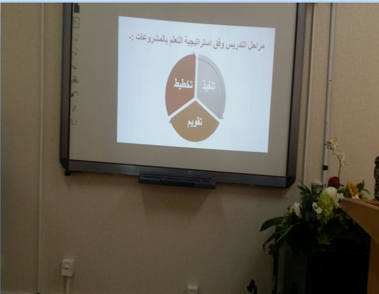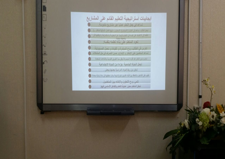 ضمن برنامج تنمية مهارات عضوات هيئة التدريس الذي تنفذه وكالة الجامعة للشؤون التعليمية والأكاديمية ممثلة بالوحدة الإشرافية على كليات البنات بهدف تطوير المهارات التدريبية لدى عضوات هيئة التدريس ، حيث تم في يوم الخميس الموافق 29 /11/1437هـ تفعيل ورشة تدريبية بعنوان" إستراتيجية التدريس بالمشروعات " من إعداد وتقديم د.منال زاهد أستاذ مساعد المناهج وطرق التدريس ومدرب معتمد جامعة الأمير سطام بن عبدالعزيز، بقاعة الخنساء وقد استمرت الورشة لمدة خمس ساعات من الساعة الثامنة والنصف صباحاً حتى الساعة الواحدة والنصف ظهراً، حيث تعد استراتيجيات التدريس من أهم وسائل المناهج الحديثة التي تضع الطالب في مواجهة حقيقية مع المجتمع ومشكلاته والورشة تهدف بشكل عام شرح مفهوم التدريس بإستراتيجية المشروعات – مناقشة أهمية إستراتيجية التدريس بالمشروعات في التعليم الجامعي – المقارنة بين استراتيجيات التدريس التقليدية وإستراتيجية المشروعات – تفهم الاختلافات بين مشروع التخرج والمشروعات كمتطلب لاجتياز مقرر دراسي – تصنف المشروعات تبعا لطريقة تنفيذها والهدف منها - مناقشة كلاً من آليات إدارة فرق العمل في المشروعات و أساليب تقييم مشروعات الطلاب و معوقات التعليم بإستراتيجية المشروعات وكيفية مواجهتها، هذا وقد تميزت الورشة بتفاعل الحاضرات .