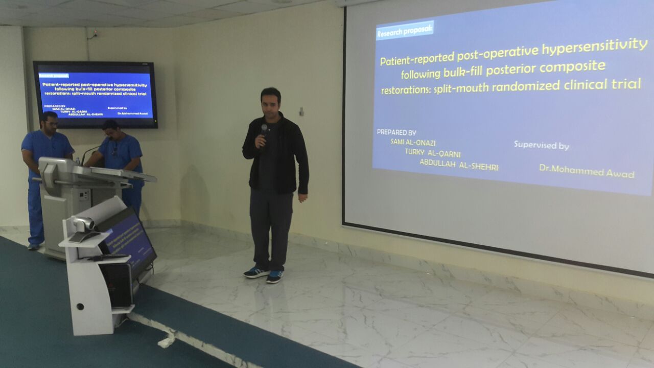 أقامت كلية طب الأسنان بجامعة الأمير سطام يومي الاثنين الموافق 19/12/2016م ويوم 26/12/2016م بعقد الملتقى العلمي الثالث لأطباء الامتياز والذي تمت فيه مناقشة عروض أبحاثهم المقدمة من قبل أطباء الامتياز . وتم قسيم الطلاب إلى ثلاث مجموعات تم فيها تقديم 11 بحث .