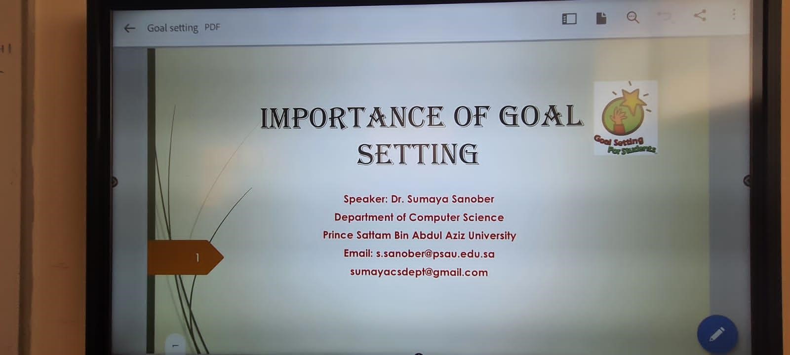 وبحضور عدد من طالبات وعضوات هيئة التدريس بالكلية قدمت الدورة أ. سمية سنوبر المحاضر بقسم الحاسب الآلي – من خلال الشرح الوافي الذي تناول كافة أهداف الدورة التدريبية، وتمت بعض المناقشات من العضوات حول كيفية تحديد الهدف وأثره في النجاح والتميز، وكانت من الدورات المتميزة التي أسهمت بشكل كبير في زيادة المعارف لدى المتدربات.