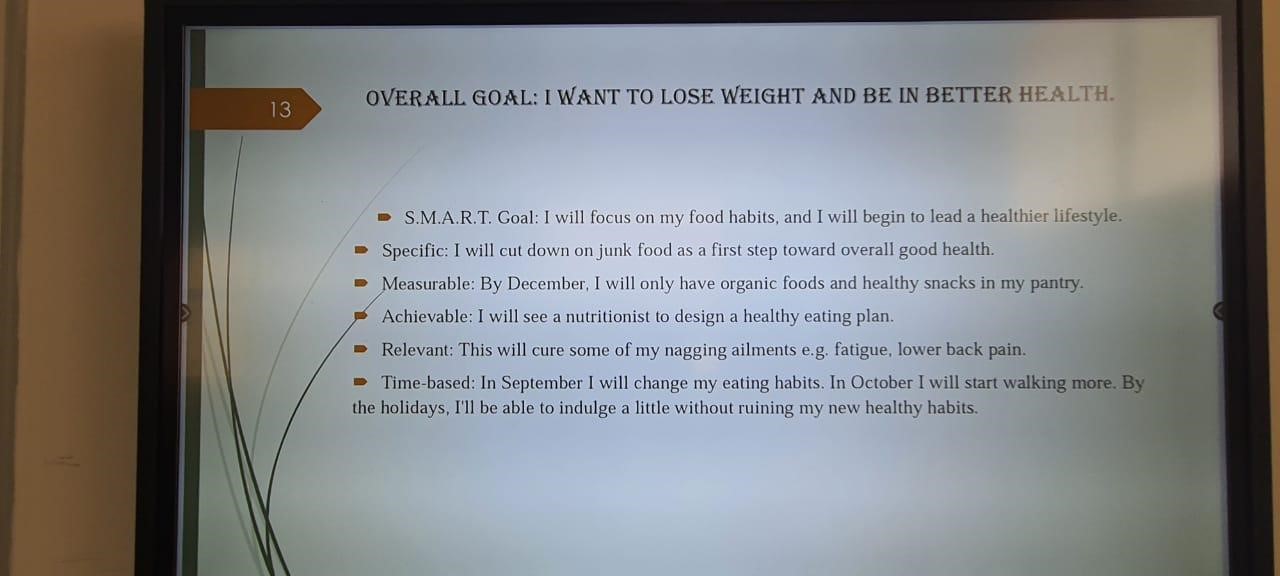 • العصف الذهني للعوامل التي قد تعيق تحقيق الهدف والطرق الممكنة لمعالجة هذه القضايا.