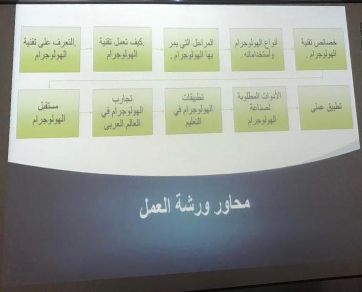 نظم قسم مناهج وطرق التدريس تحت إشراف وحدة العمل الطلابي ورشة عمل بعنوان ( الهولوجرام وتطبيقاته في التعليم ) يوم الخميس الموافق 18-2-1441هـ, للدكتورة/ إيمان حلمي على عمر, أستاذ تقنيات التعليم المساعد بالقسم. وتهدف الدورة للتعرف على تقنية الهولوجرام وكيف عمله,و المراحل التي يمر بها الهولوجرام وأنواعه وخصائصه,ومستقبل الهولوجرام وتجارب الهولوجرام في العالم العربي وتطبيقاته,والأدوات المطلوبة لصناعة الهولوجرام.ثم تم تطبيق عملي للهولوجرام.