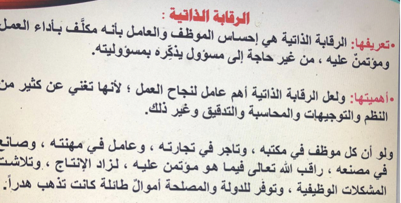 افتتحتها بمقدمة عن الرقابة الذاتية وشرح الرقابة الذاتية وأهميتها وأثرها على الفرد والمجتمع وبيان ضرورة التحلي بها ودعمها لأنها سبب للتميز والنجاح في أي مؤسسة