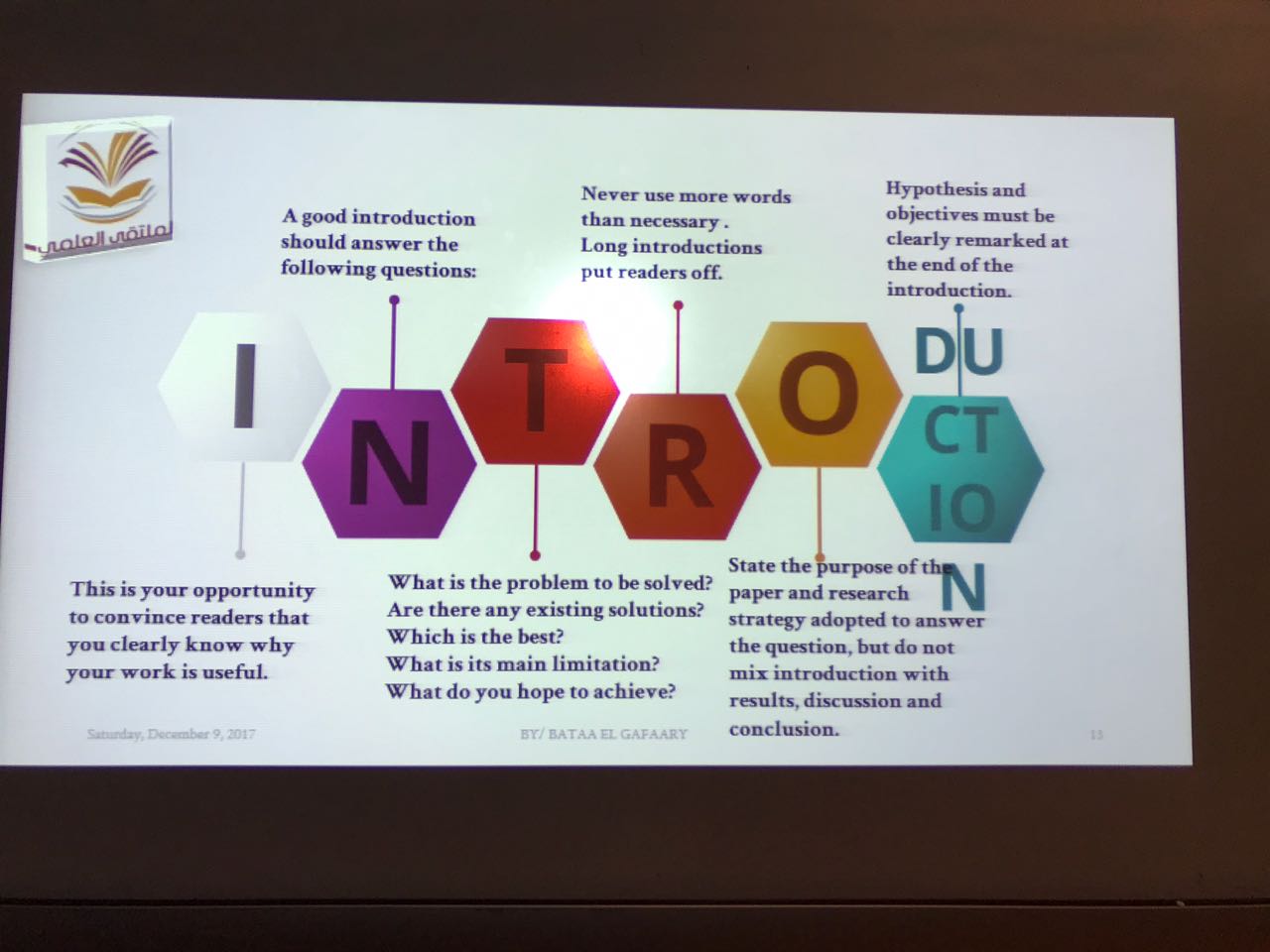 و تم تعريف الحضور بالأهداف العامة التي تسعى السلامة لتحقيقها و المقومات اللازمة لذلك كما تم توضيح أهم مخاطر العمل و منها المخاطر الكيميائية و الطبيعية و الهندسية و البيولوجية و غيرها و عرض أمثلة لحوادث من الواقع و مناقشة مواجهاتها و أخذ الاحتياطات اللازمة .