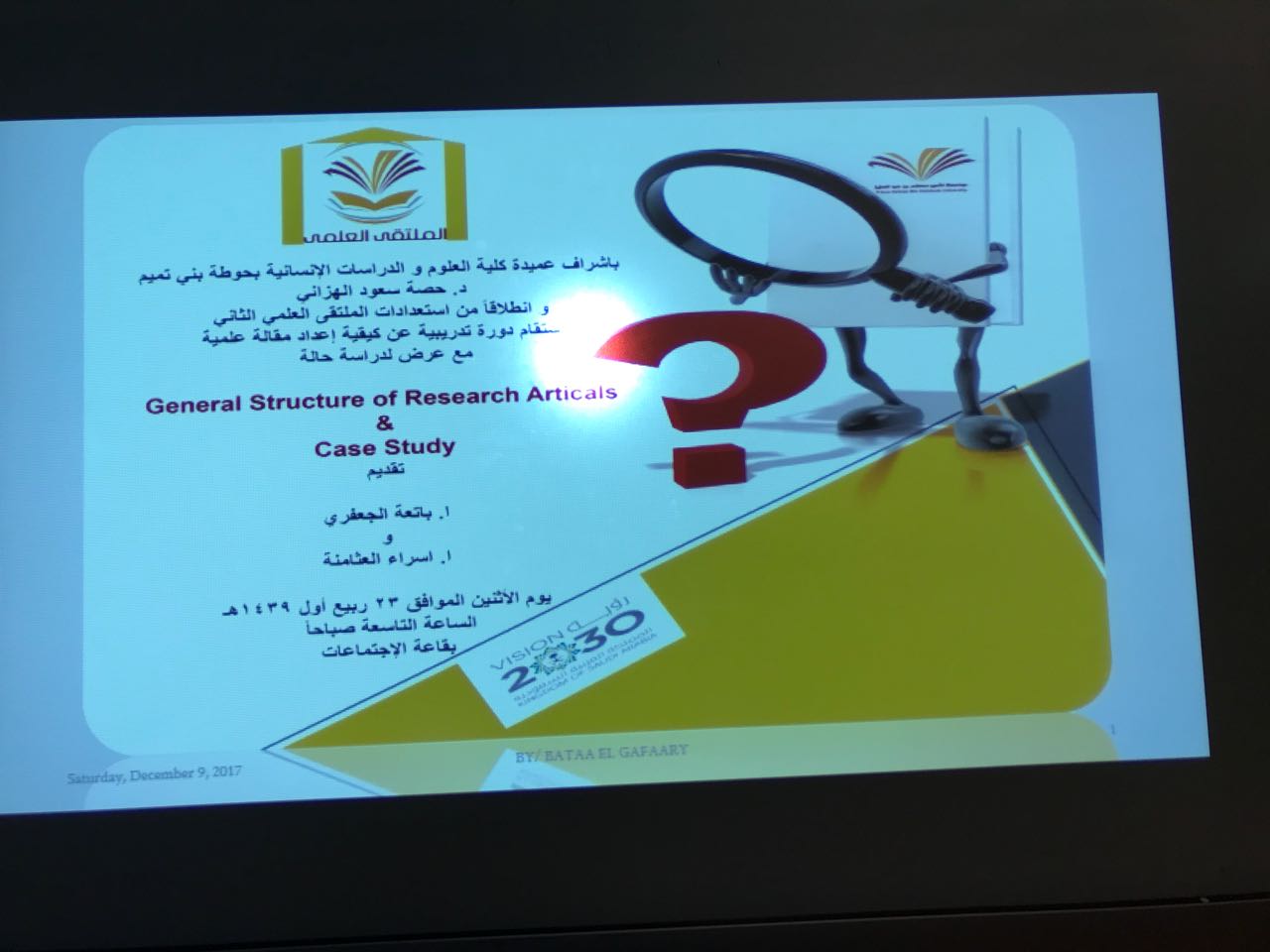 أقام قسم الكيمياء بالتعاون مع وحدة العمل الطلابي ورشة عمل بعنوان (السلامة و الأمن الصحي) بمسرح الكلية يوم الأربعاء الموافق ٥/٦/١٤٣٩هـ في تمام الساعة العاشرة و قدمتها أ.باتعة الجعفري برعاية وحضور عميدة الكلية د. حصة بنت سعود الهزاني. و ذلك عن طريق عرض ببرنامج و تضمن محوريين أساسيين: