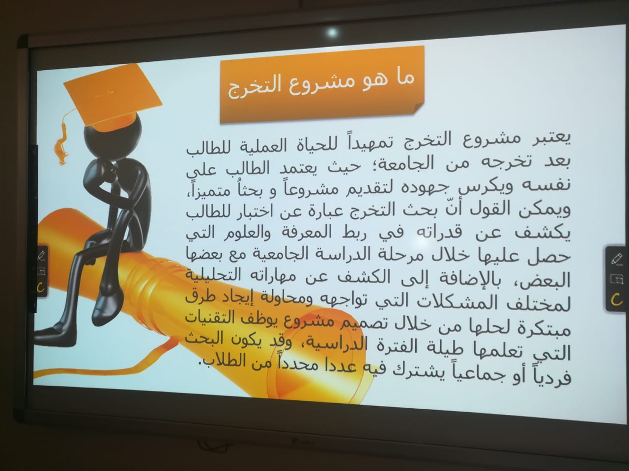 في يوم الأربعاء الموافق 26/1/1441هـ تم عقد ورشة عمل لطالبات مشاريع التخرج بقسم الرياضيات من إلقاء الدكتورة أفراح بصلي والدكتورة جهاد والدكتورة ليلى فؤاد وقد كانت أهم المحاور الرئيسية للورشة: أساسيات البحث العلمي الإخراج العام لكتابة المشروع ومهارات الكتابة في برنامج الوورد.