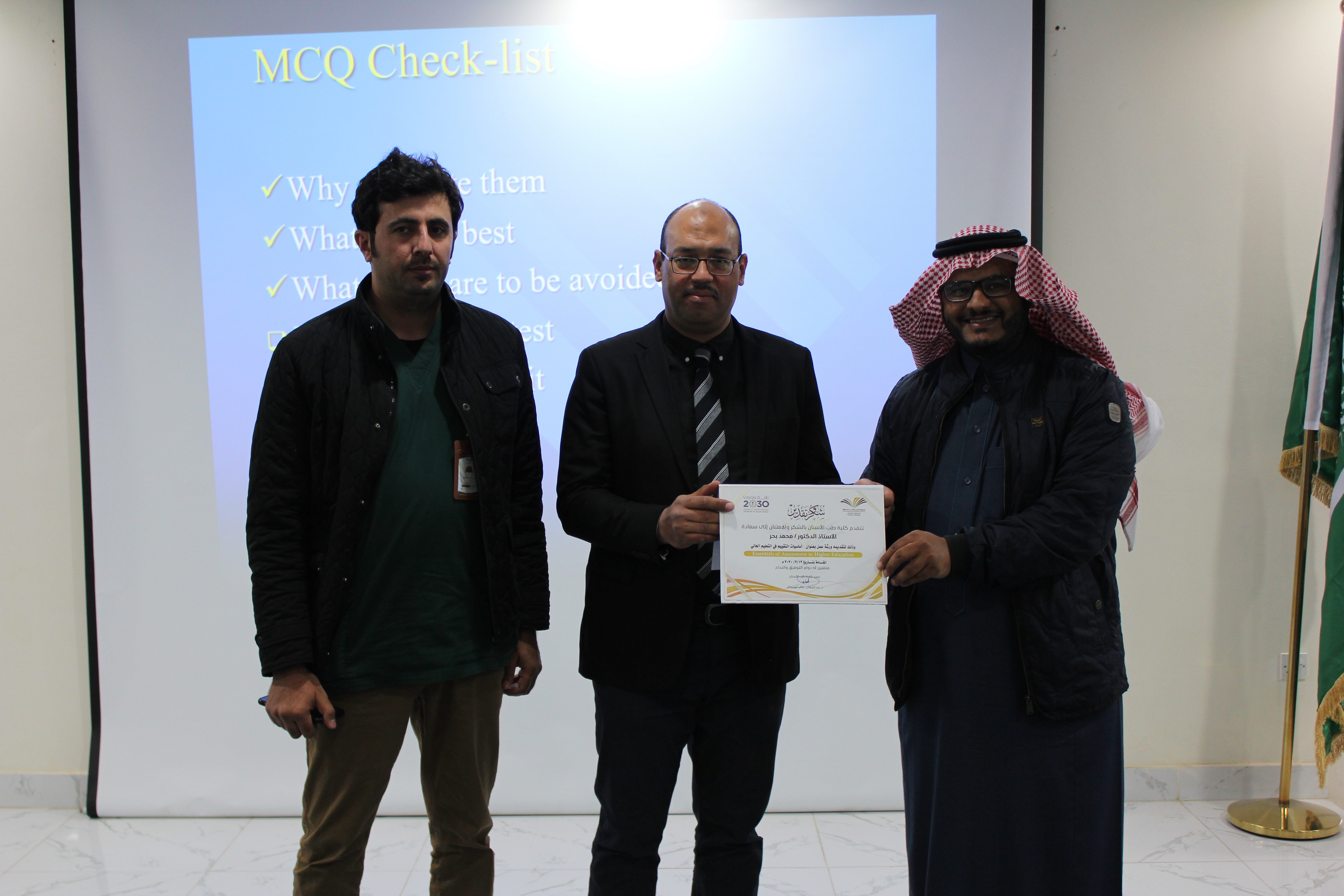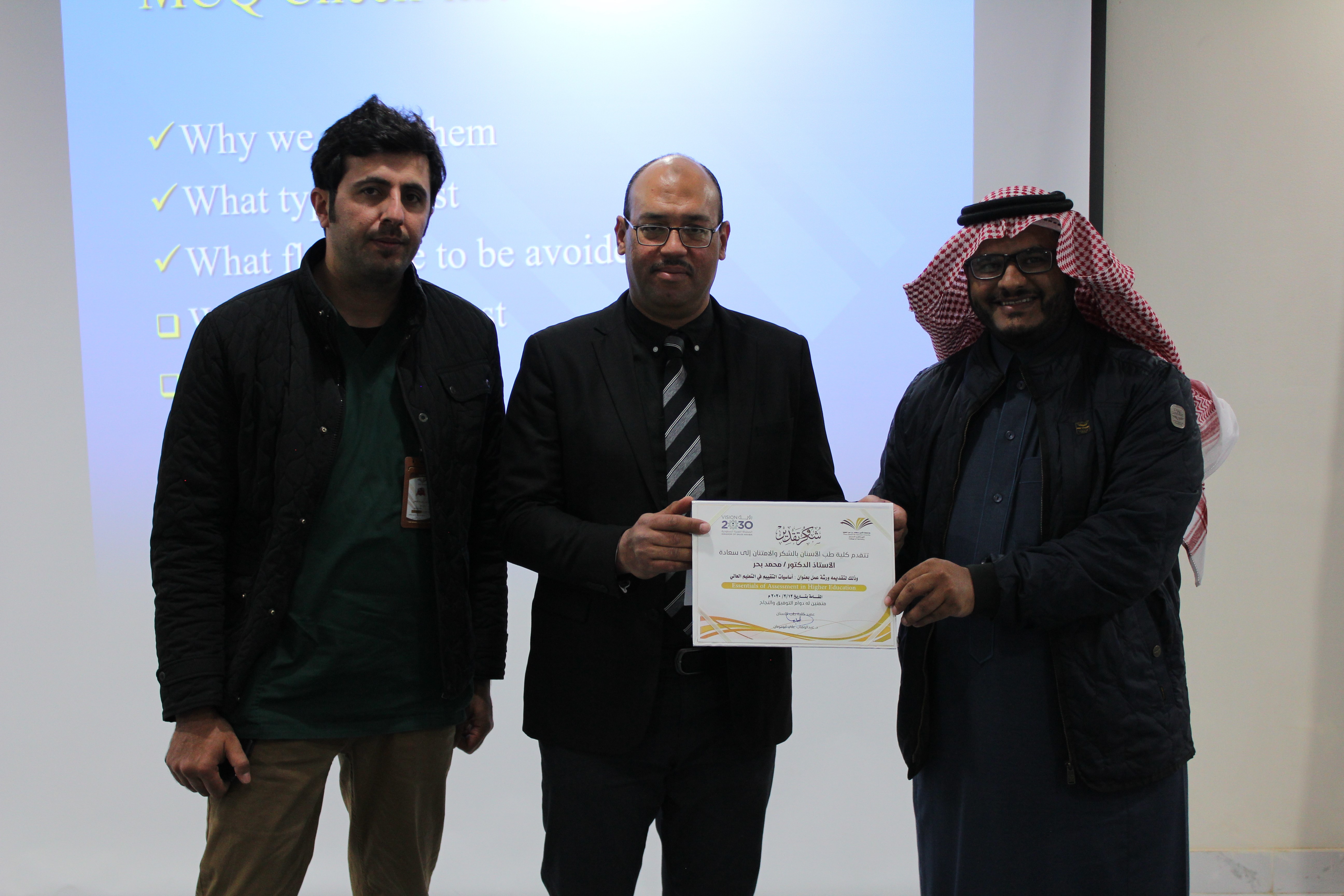 أقامت وحدة تطوير مهارات أعضاء هيئة التدريس والتعليم المستمر التابعة لوكالة الكلية للدراسات العليا والبحث العلمي والجودة ورشة عمل بعنوان: أساسيات التقييم في التعليم العالي ( Essentials of Assessment in Higher Education )