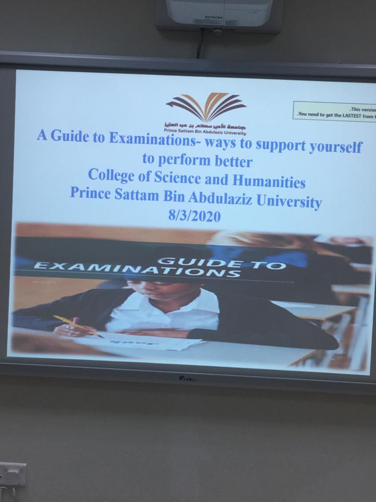 فقد هدفت الورشة إلى تعريف الطالبات بأهمية المهارات المعينة على أداء الاختبارات، وكيفية الإجابة عن أنواع الأسئلة المختلفة المقالية والموضوعية وهدفت أيضا إلى تسليط الضوء على أهمية إدارة الوقت بطريقة فعالة مما يمكن الطابة من الإجابة عن جميع الأسئلة ومراجعتها قبل انتهاء الوقت المخصص للاختبار وتعلم السبل المعينة على التحكم بالقلق المصاحب للاختبار وآليات التخلص منه بطرق عملية، وتم تزويد الطالبات بأهم الارشادات المتبعة في يوم الاختبار وأثناء اجراءه.