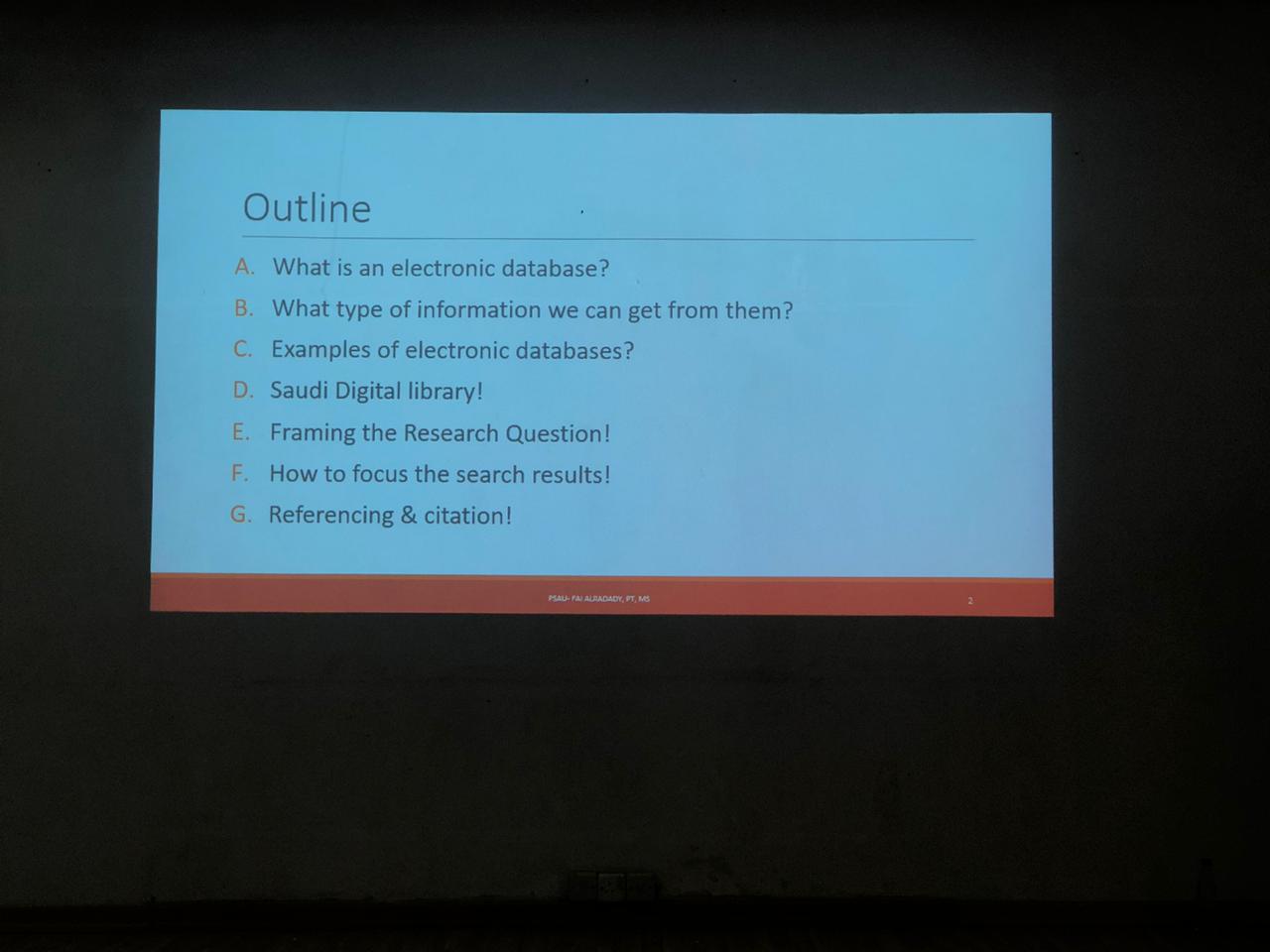 أقامت وحدة التقنية والتعليم عن بعد و لجنة مشاريع التخرج بكلية العلوم الطبية التطبيقية بالتعاون مع وحدة العمل الطلابى بتنظيم ورشة عمل بعنوان " قواعد البيانات الإلكترونية وكيفية صياغة السؤال البحثي" من إلقاء أ. فيء الردادي يوم الأربعاء الموافق 5-11-2019 م ، وبحضور عينة ممثلة من الطالبات المتوقع تخرجهن والطالبات بالمستويات المختلفة بأقسام الكلية ، وكذلك شرف الحضور مجموعة من عضوات هيئة التدريس وعضوات لجنة مشاريع التخرج بالكلية،وقد حرصت وحدة التقنيه والتعليم عن بعد بالكلية من خلال هذه المحاضرة على تزويد الطالبات والخريجات بالمهارات الأساسية في إستخدام قواعد البيانات العلمية والاستفادة من الخدمات المقدمة من المكتبة السعودية الرقمية.
