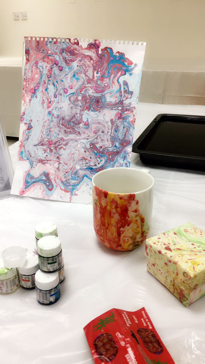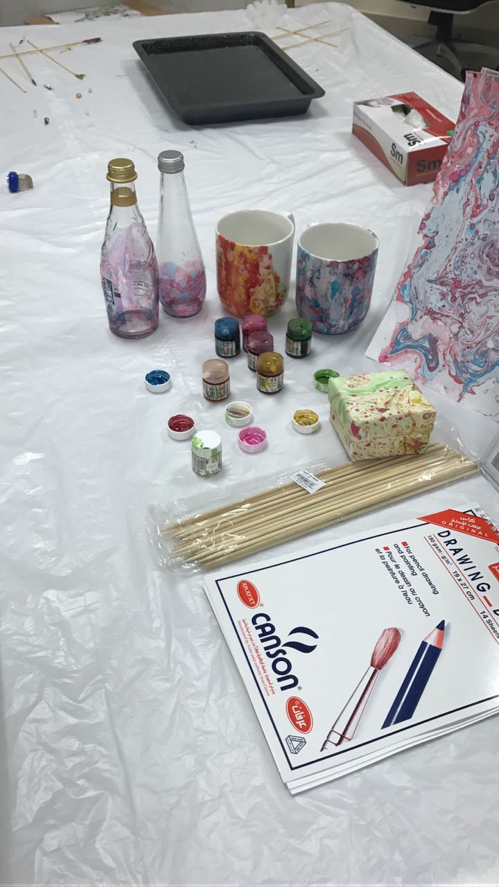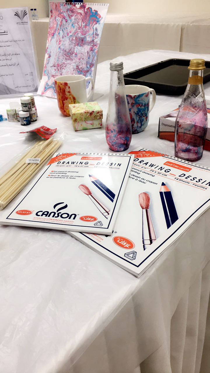 أقام نادى الإبداع بالتعاون مع وحدة المواهب بكلية العلوم والدراسات الإنسانية بحوطة بني تميم في يوم الأثنين 10 / 6 / 1439 هـ ورشة عمل بعنوان "فن الترخيم و السحب على الماء" تحت قيادة عميدة الكلية د حصة بنت سعود الهزانى وذلك ومن إعداد الأستاذة مها الصقعبي. هدفت الورشة إلى اعطاء المشاركات فكرة واضحة للاستفادة من الخامات المتوفرة في حياتهم وكيفية التصرف بها عن طريق توظيفها فنياً ونفعياً لرفع المستوى الفني والجمالي والاتجاه بالفرد إلى حياة أفضل. وقد شهدت هذه الفعالية حضوراً فعالاً ومميزاً من قبل عدد من الطالبات والإداريات وأعضاء هيئة التدريس بالكلية.