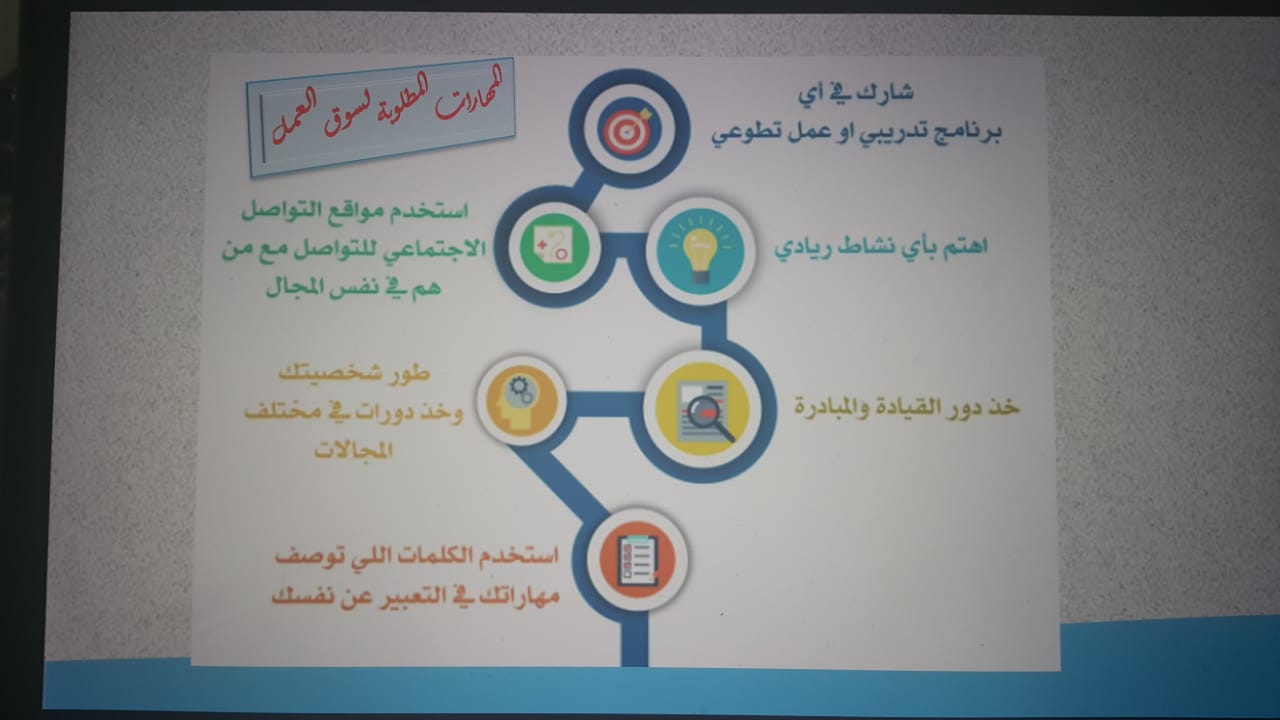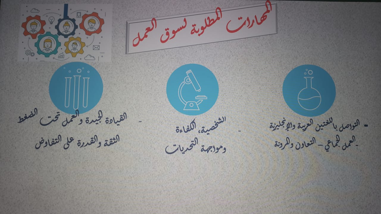 - المهارات المطلوبة لسوق العمل وكيفية اكتسابها ومجالات العمل المتاحة لهذا التخصص