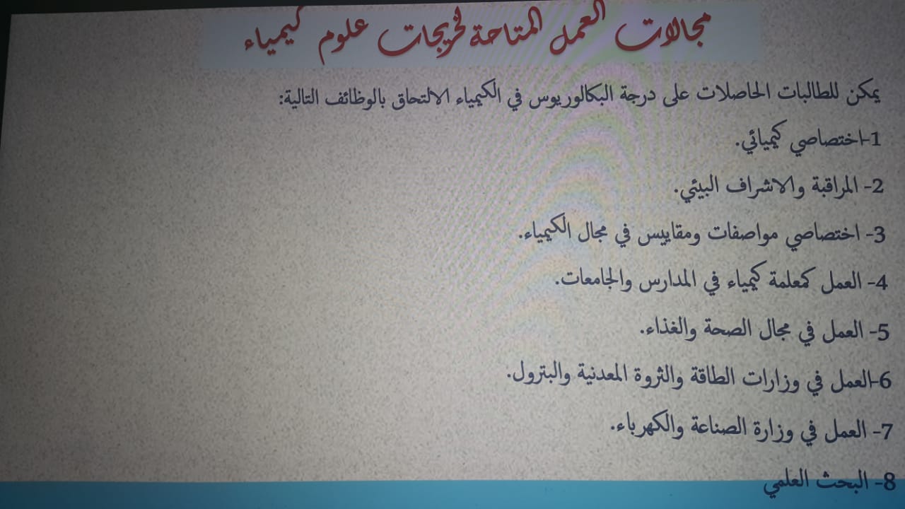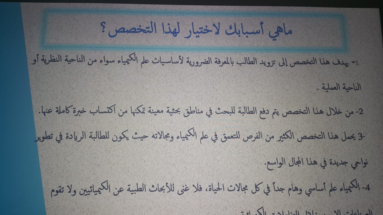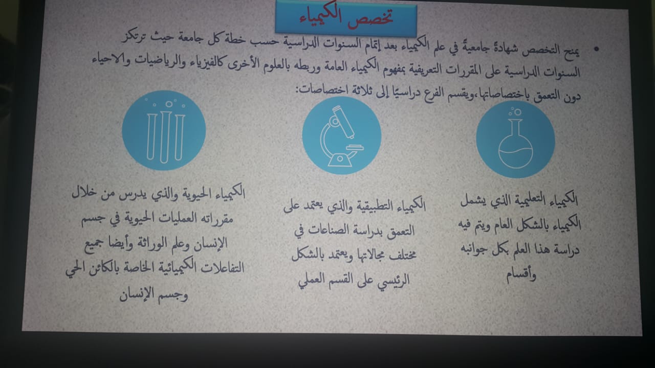 - ما أسباب الطلب على تخصص الكيمياء ونسبة ركوده.