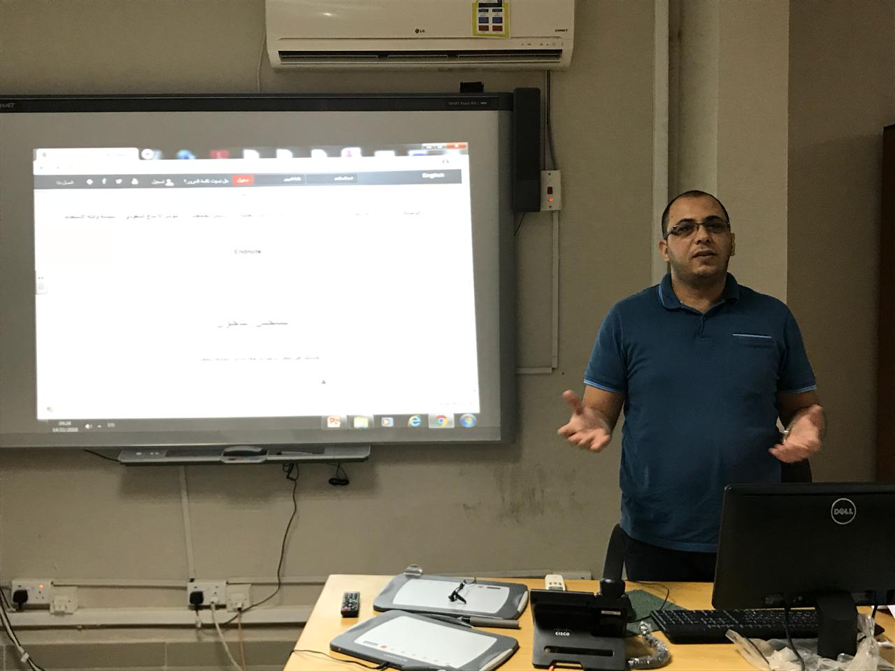 الورشة من إعداد وتقديم كل من الدكتور /عبدالفتاح أحمد خلف مشرف مكتبة الكلية ، والأستاذ مصطفى محمد القضاة المحاضر بقسم الحاسب والمعلومات ..