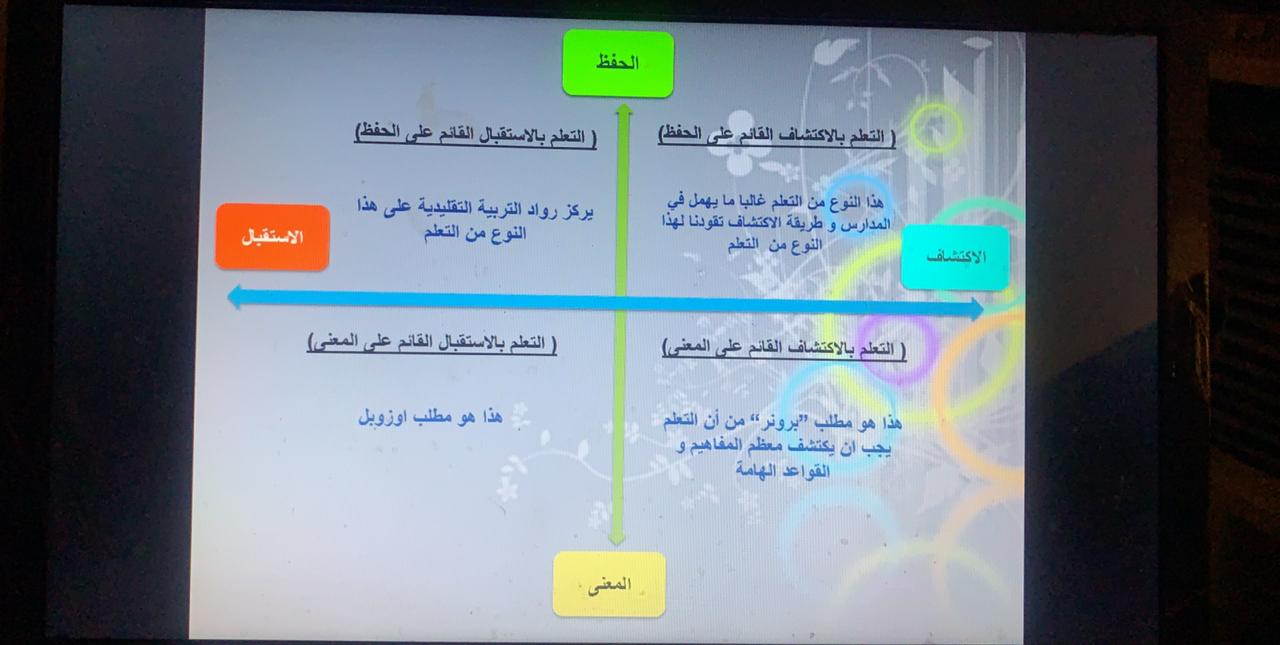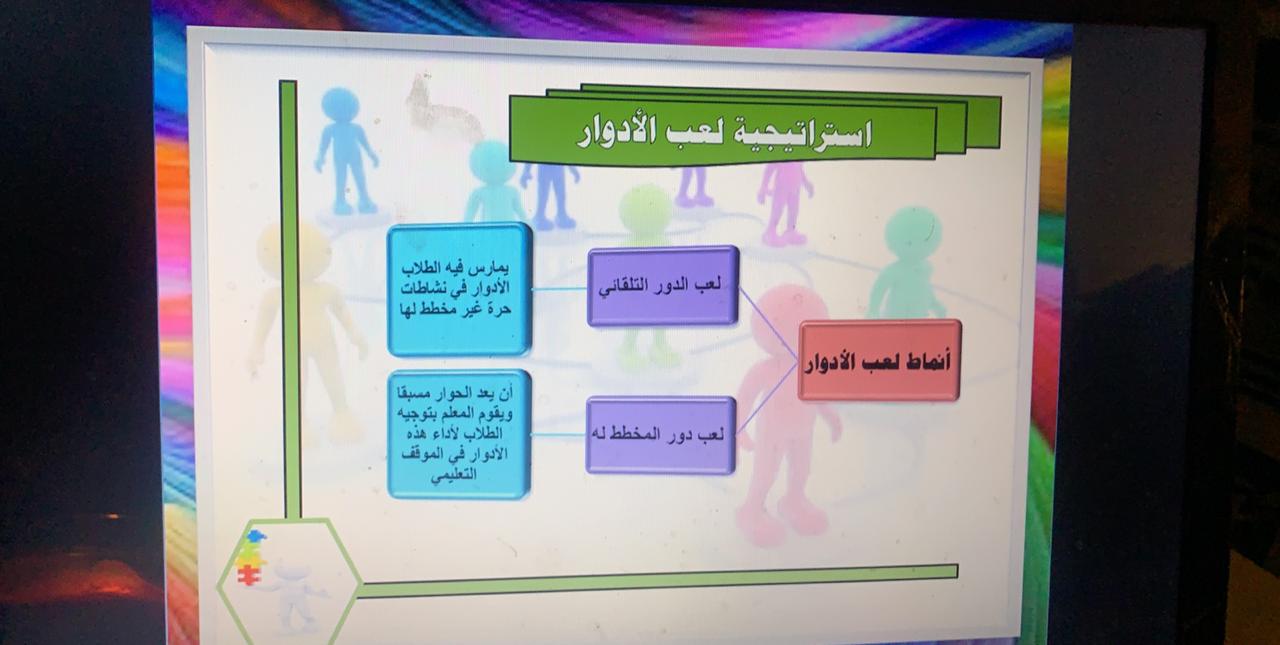 وايضاً تزويدهم وتذكيرهم بمقترحات من برامج التفكير واستراتجيات التدريس التي تتلائم مع طبيعة مقررات التربية الإسلامية بالتعليم العام وتم فيها تناول مختارات من الاستراتجيات المُقترحة وتذكيرهم بها مثل (المنظمات المتقدمة وبرنامج القبعات الست، واستراتجية لعب الأدوار والتطبيق العملي ) ومن جانب آخر تم توزيع اوراق عمل لكتابة أكثر ماتستصعبة الطالبة ويخوفها في تلك الفترة واقتراح الحلول لعلاج مثل تلك المشاكل.