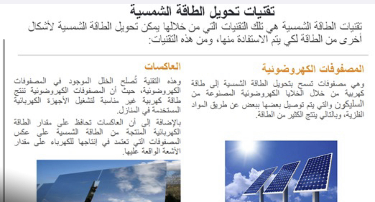 حيث تناولت الورشة في الجزء الأول شرح لأهم مصادر الطاقة و أسباب الاهتمام بالطاقة المتجددة (الأولية ) كبديل عن الطاقة غير المتجددة واستعرضت الورشة المعوقات التي تواجه انتشار استخدامها من ارتفاع تكاليف إنتاجها أو تقنياتها بالرغم من وفرة المصادر بحسب أنواعها.