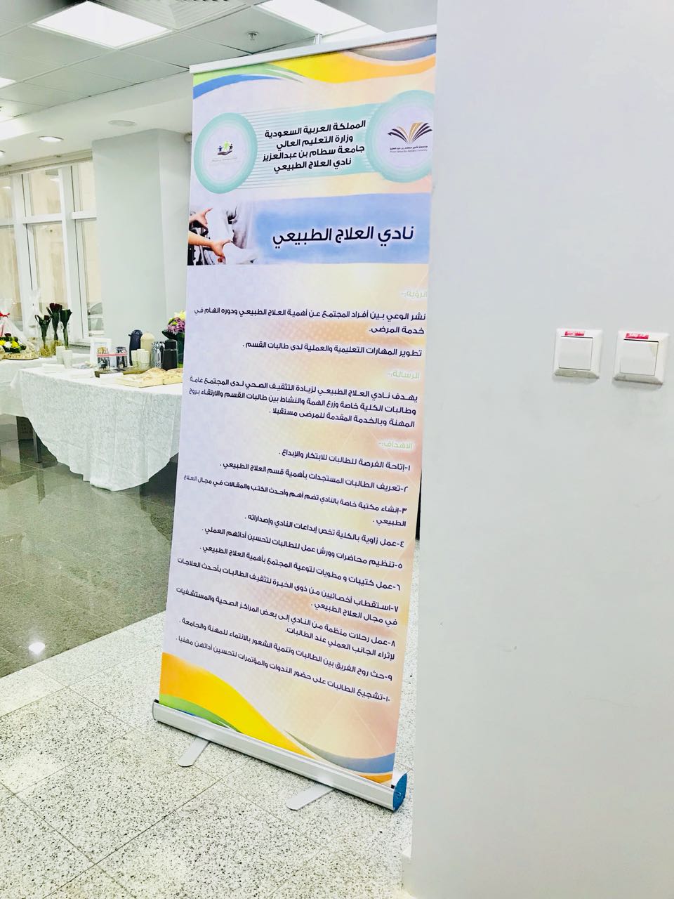 نظم نادي العلاج الطبيعي بكلية العلوم الطبية التطبيقية شطر الطالبات وبالتعاون مع قسم العلاج الطبيعي بمستشفى الولادة والأطفال بالخرج ورشة عمل بعنوان ( Myofacial trigger points ) والتي هدفت إلى اكساب الطلاب والطالبات بقسم العلاج الطبيعي المهارات العملية في الأساليب العلاجية .