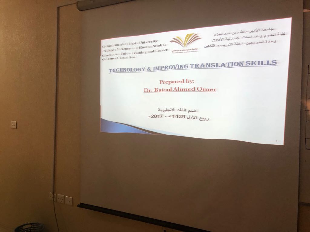 إلى جانب ذلك شرحت الدكتورة بتول أحمد أستخدام قوقل في ترجمة المصطلحات وتعلم اللغة الأنجليزية بالحاسب ، وتم تطبيق عملي على بعض المواقع لمدى استفادة المتدربات مما تعلمن.
